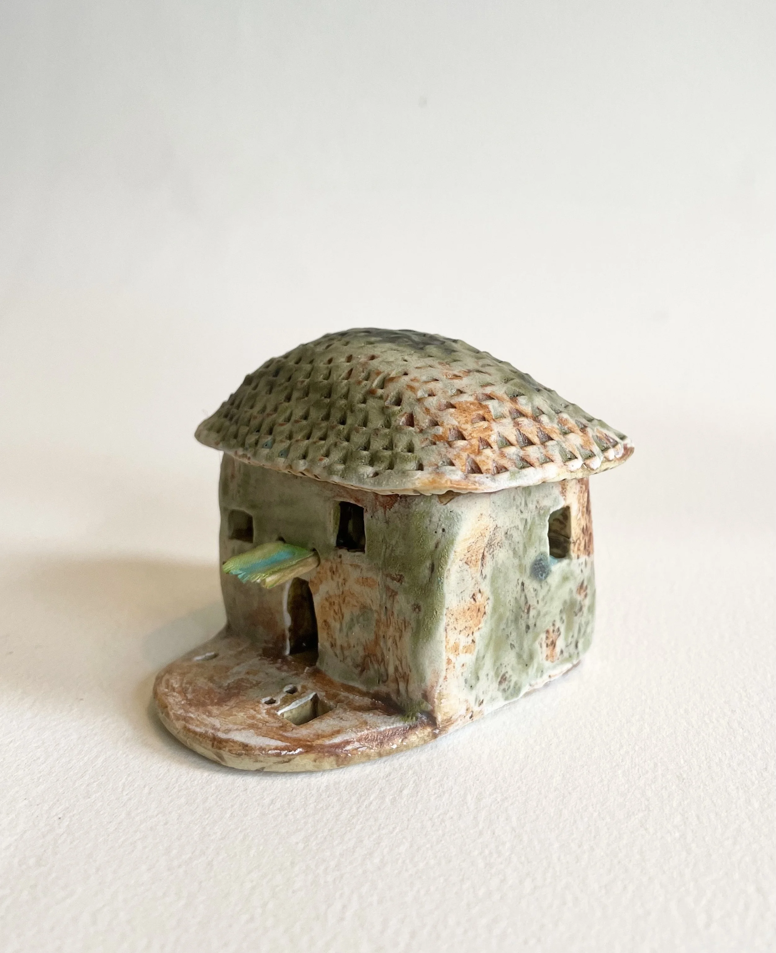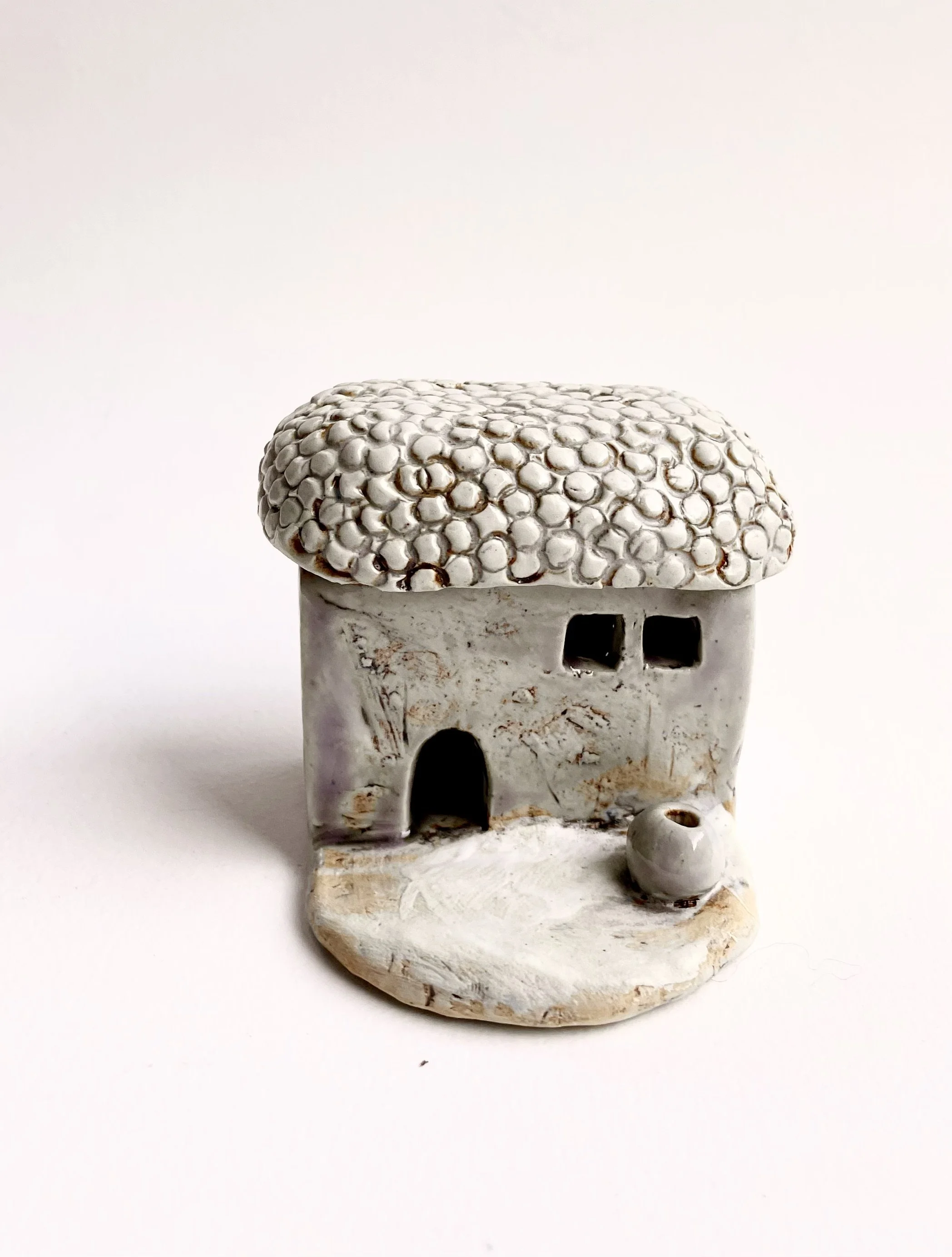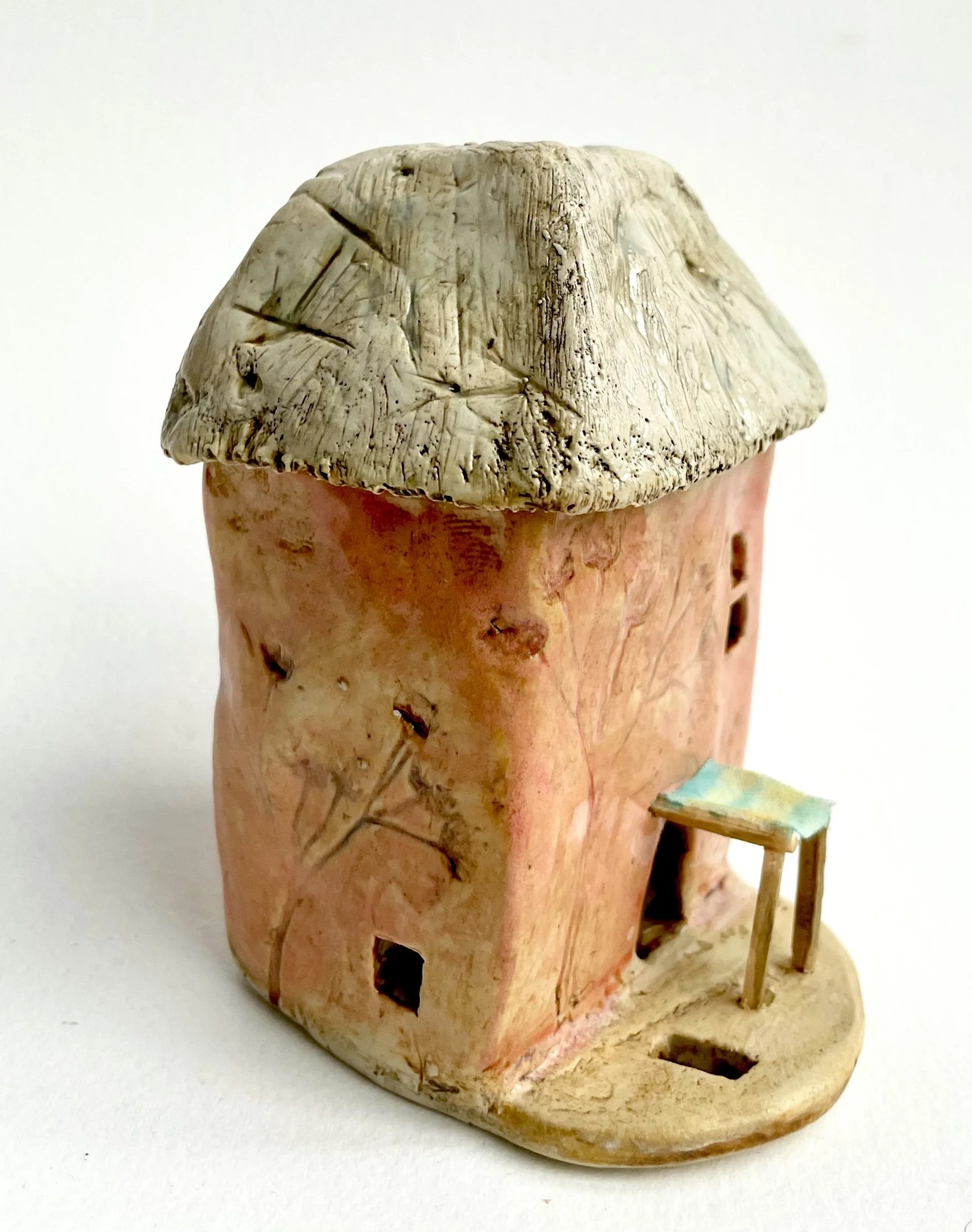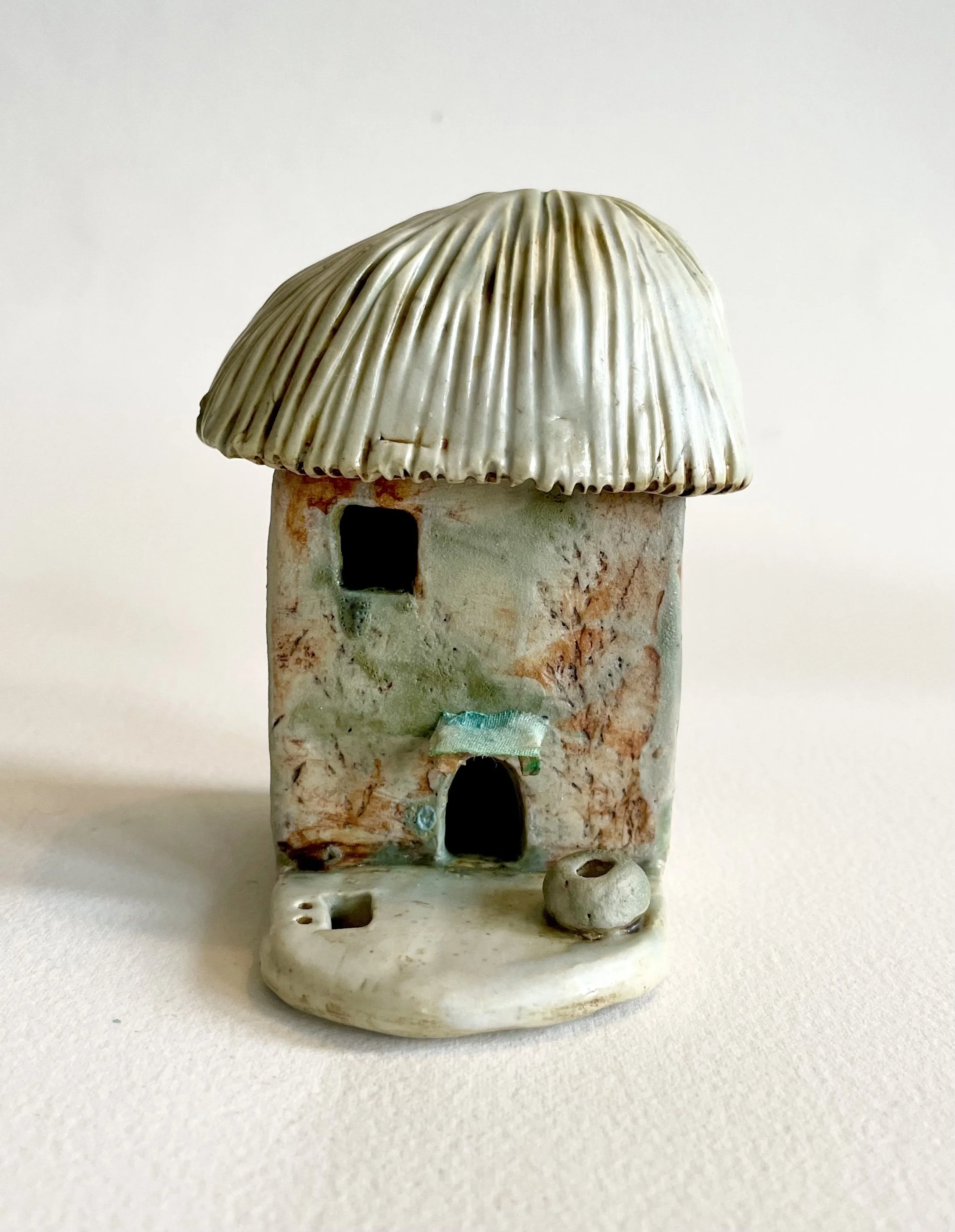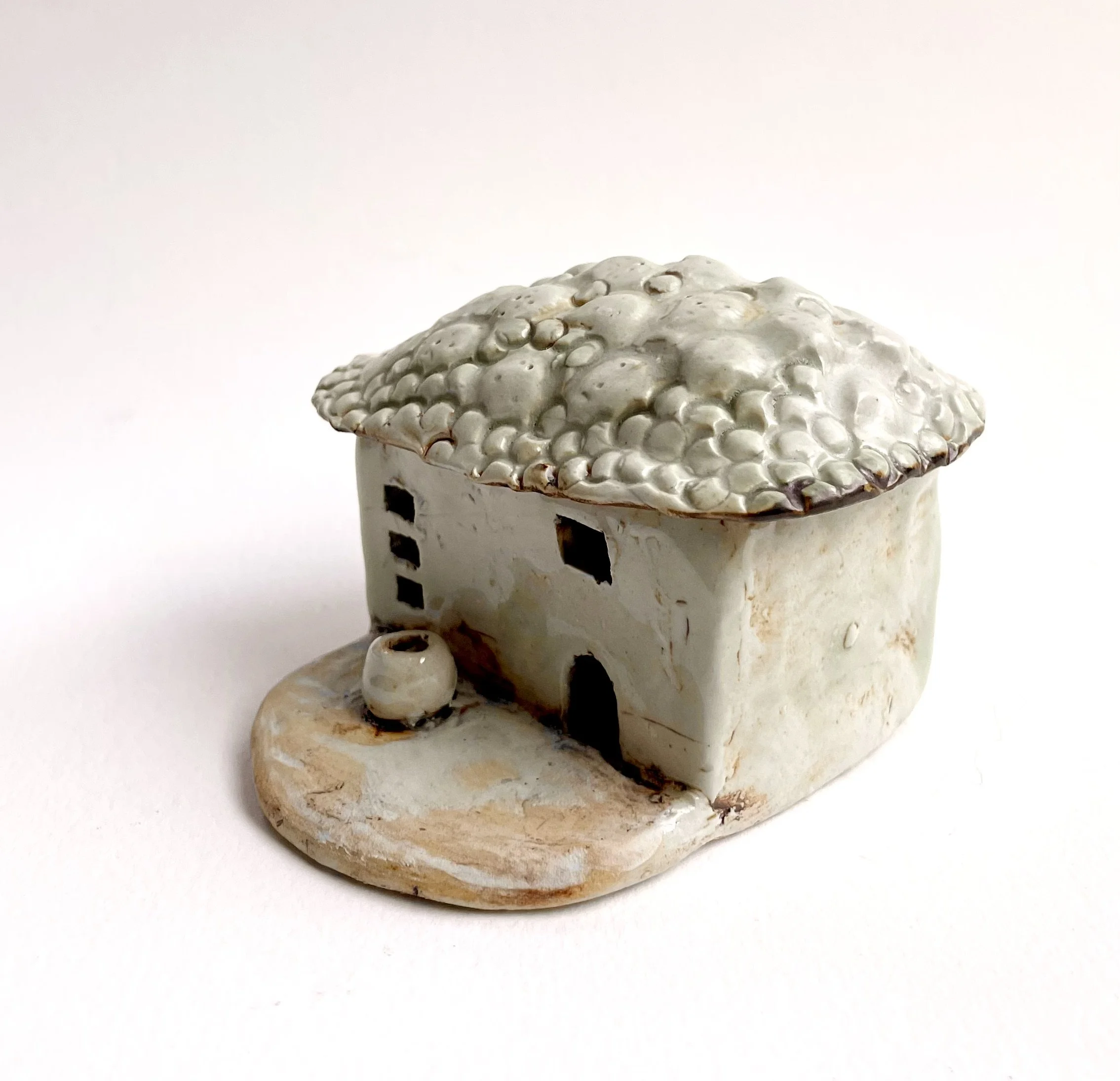 December village. My first forays into different shapes. Round cottages. Multi-level dwellings. I continued to learn and develop my use of glazes and textures.