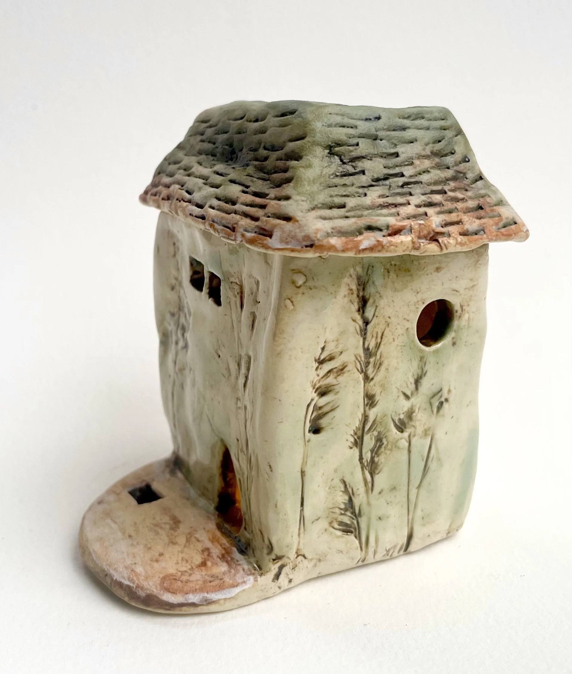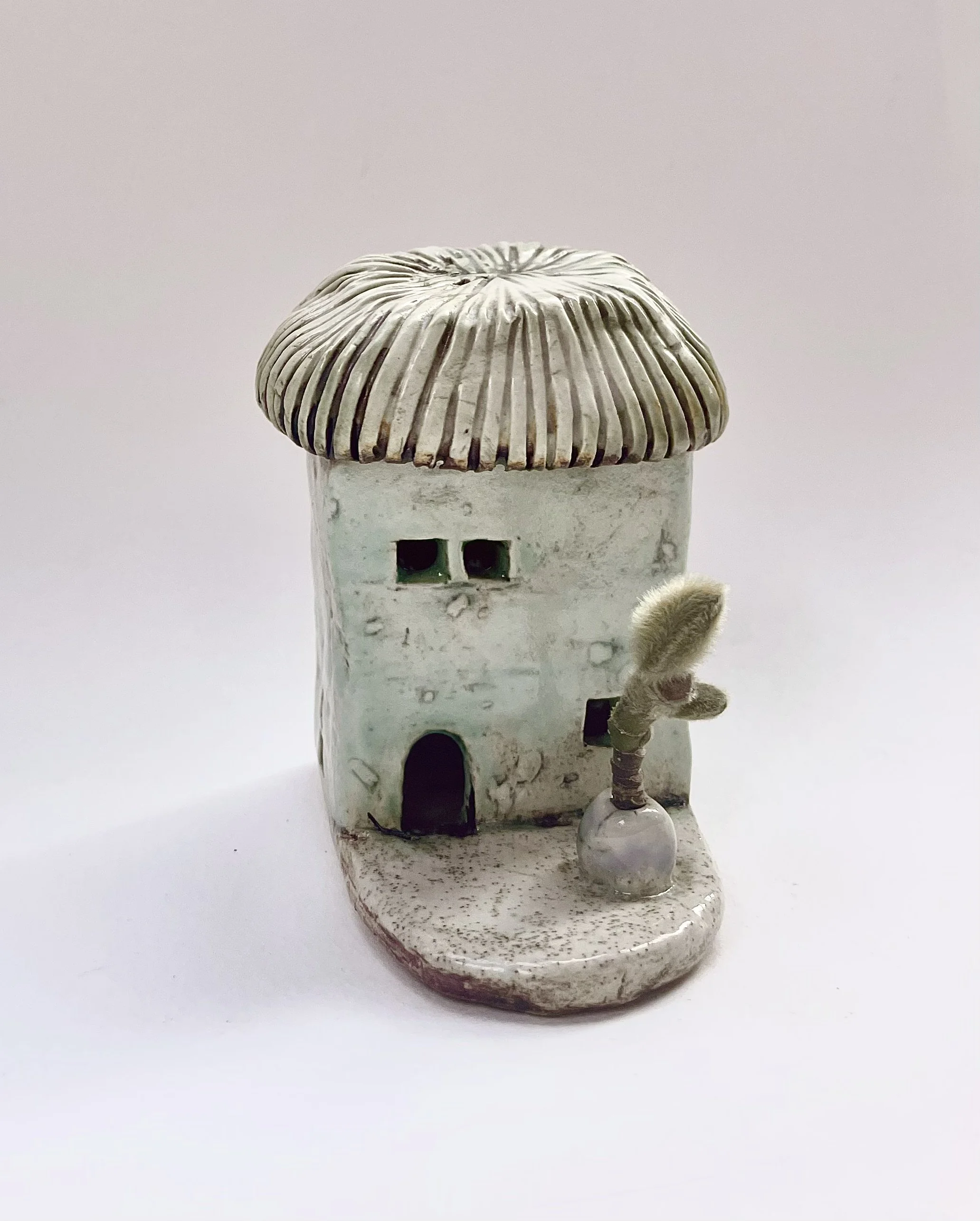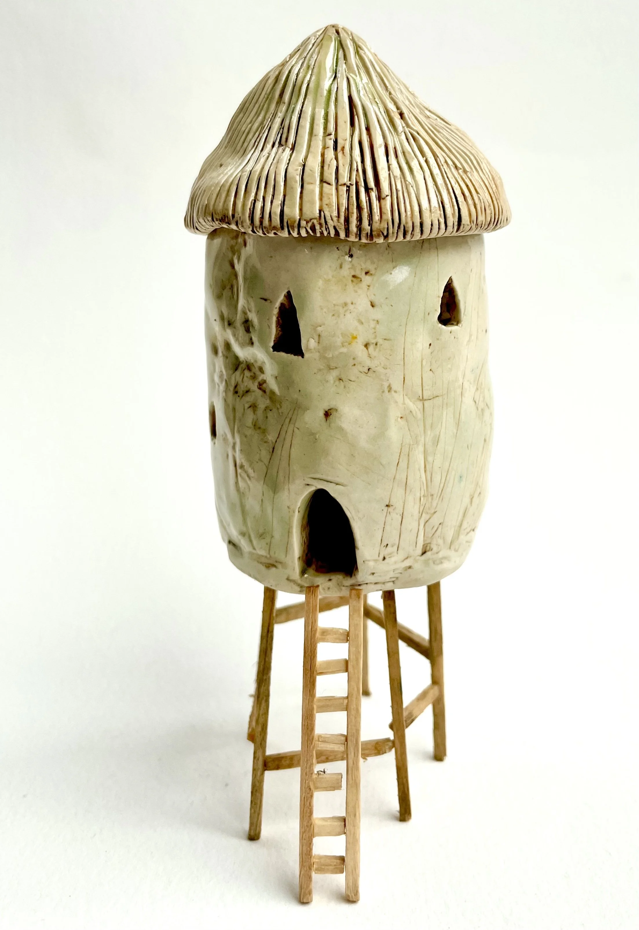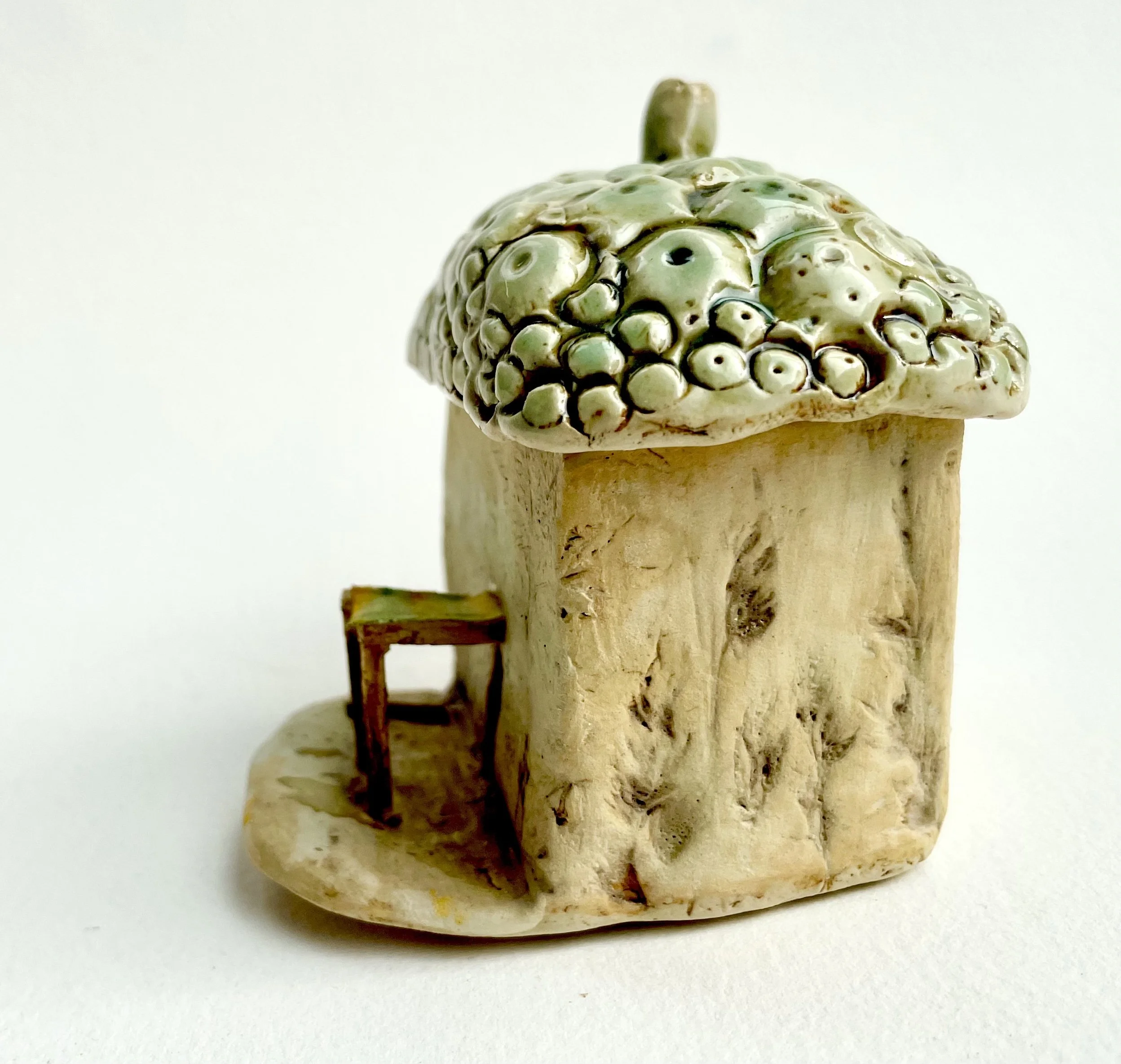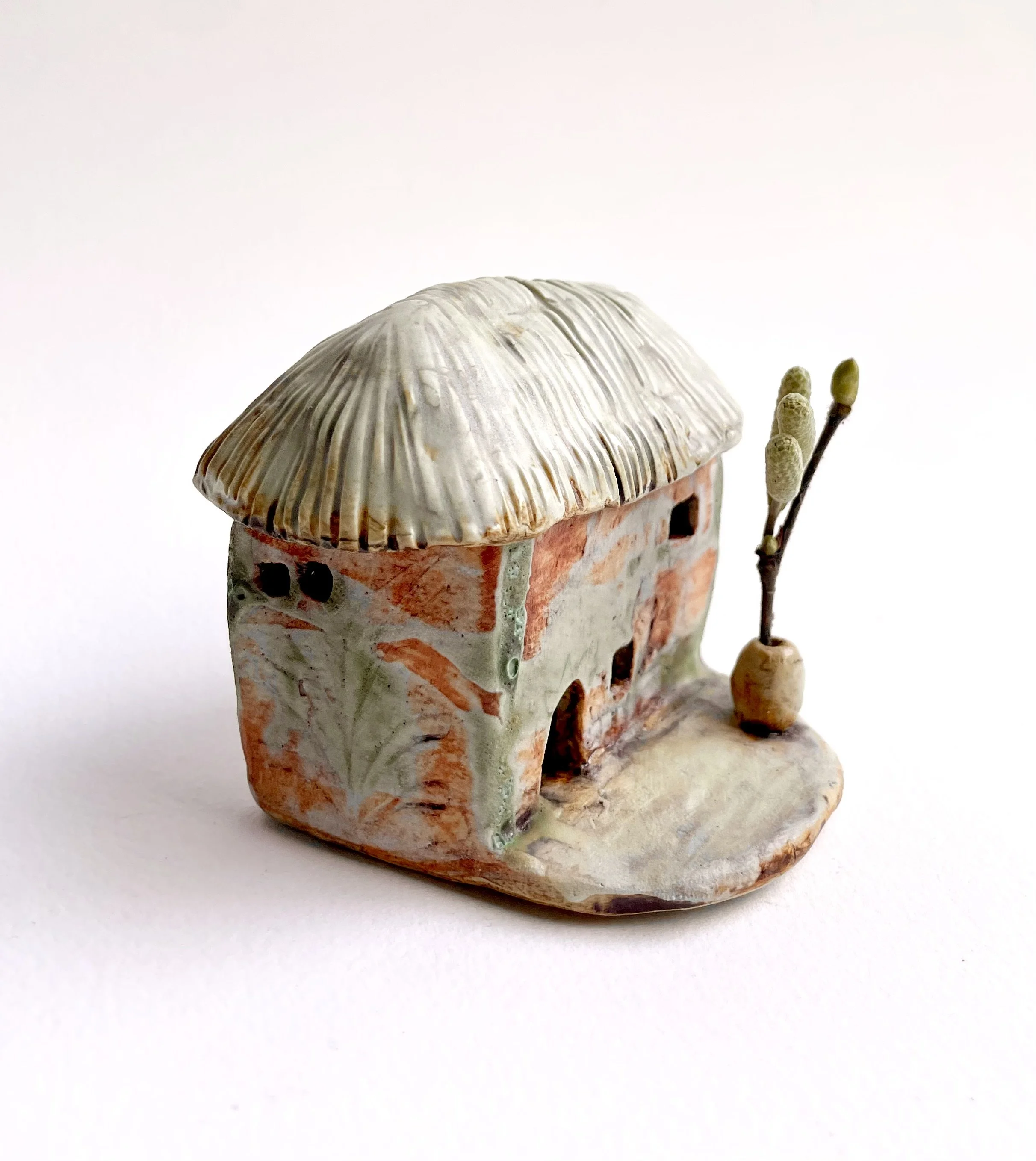 December village. My first forays into different shapes. Round cottages. Multi-level dwellings. I continued to learn and develop my use of glazes and textures.