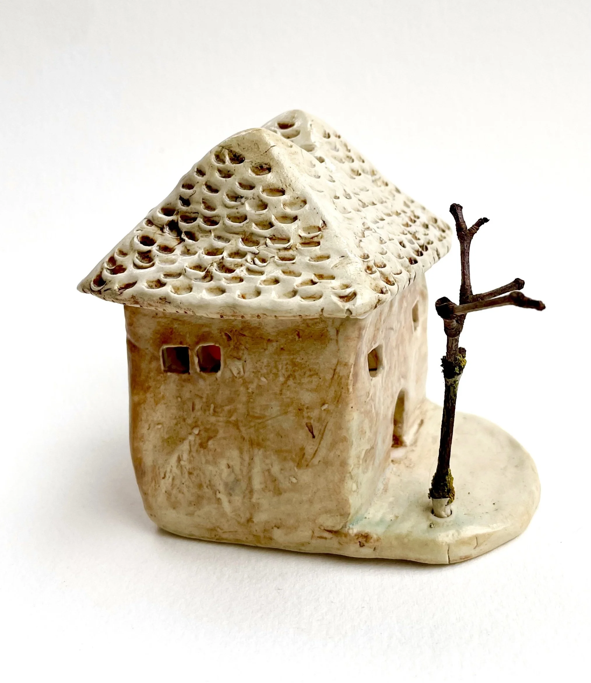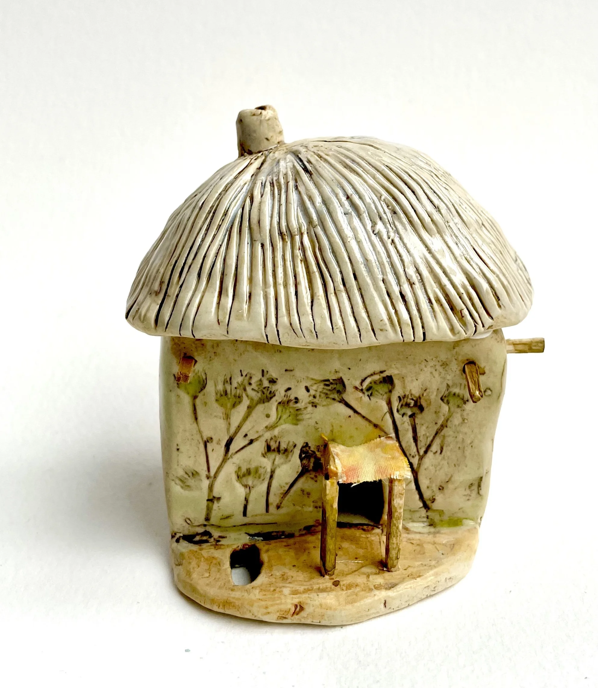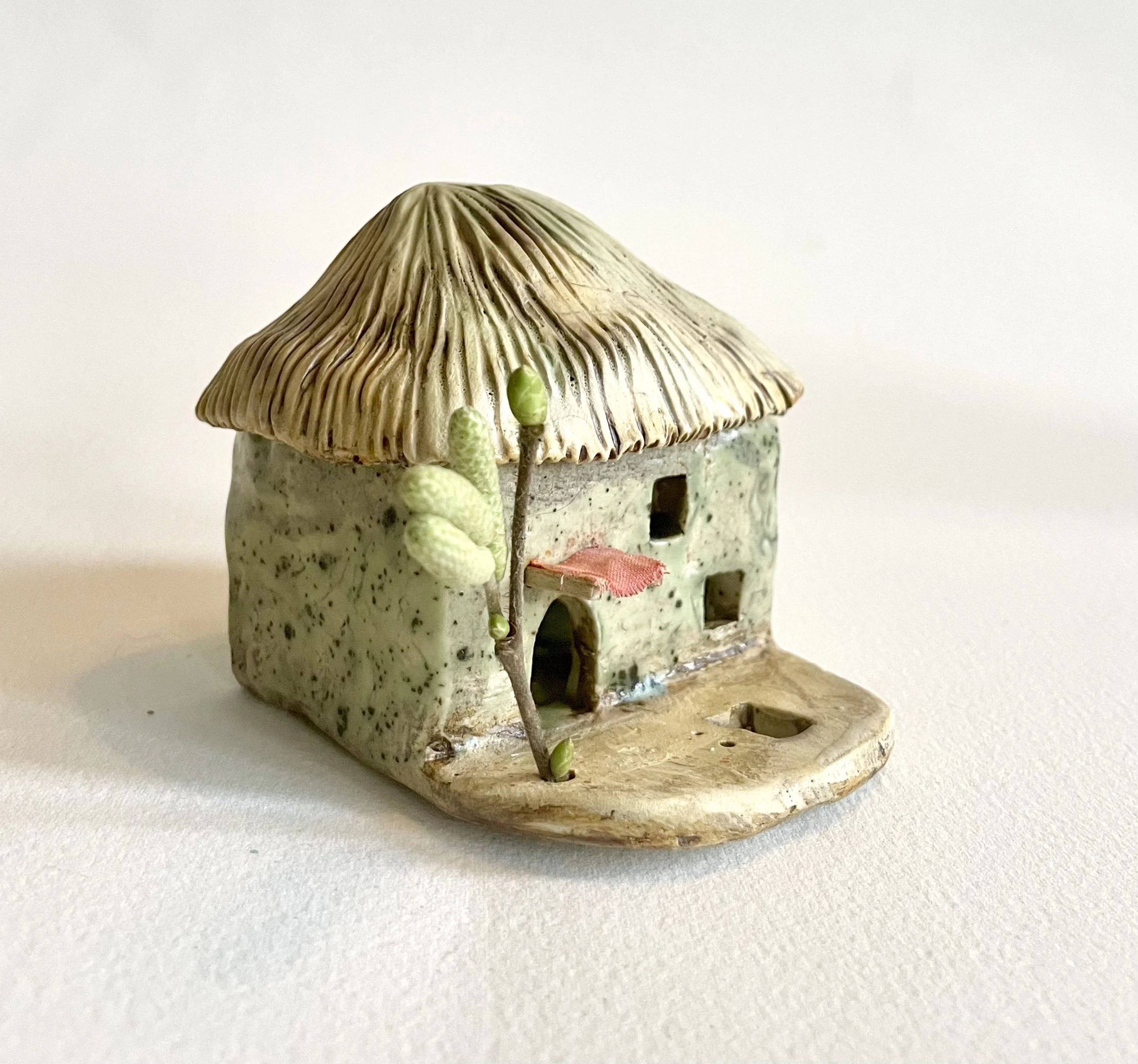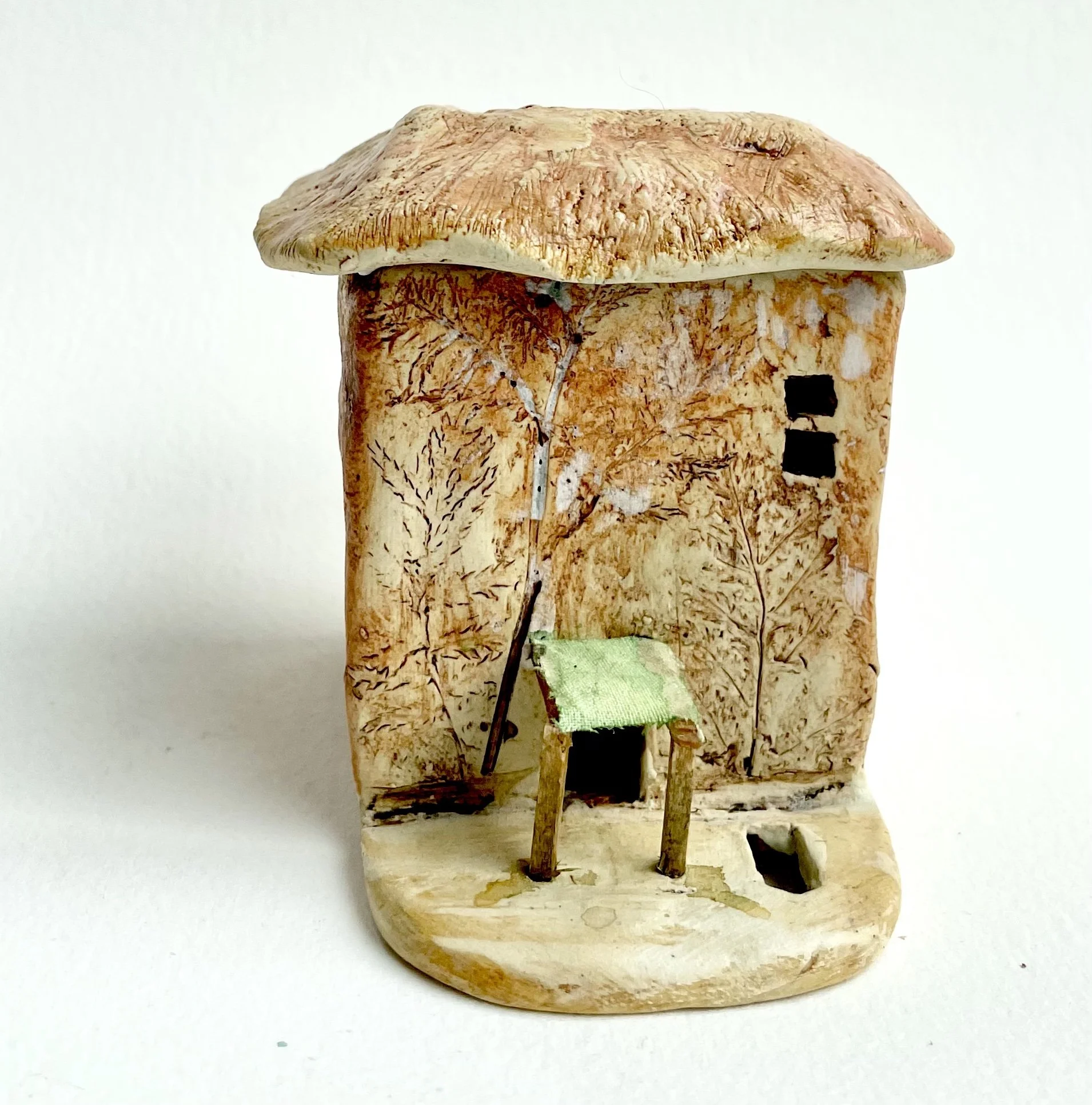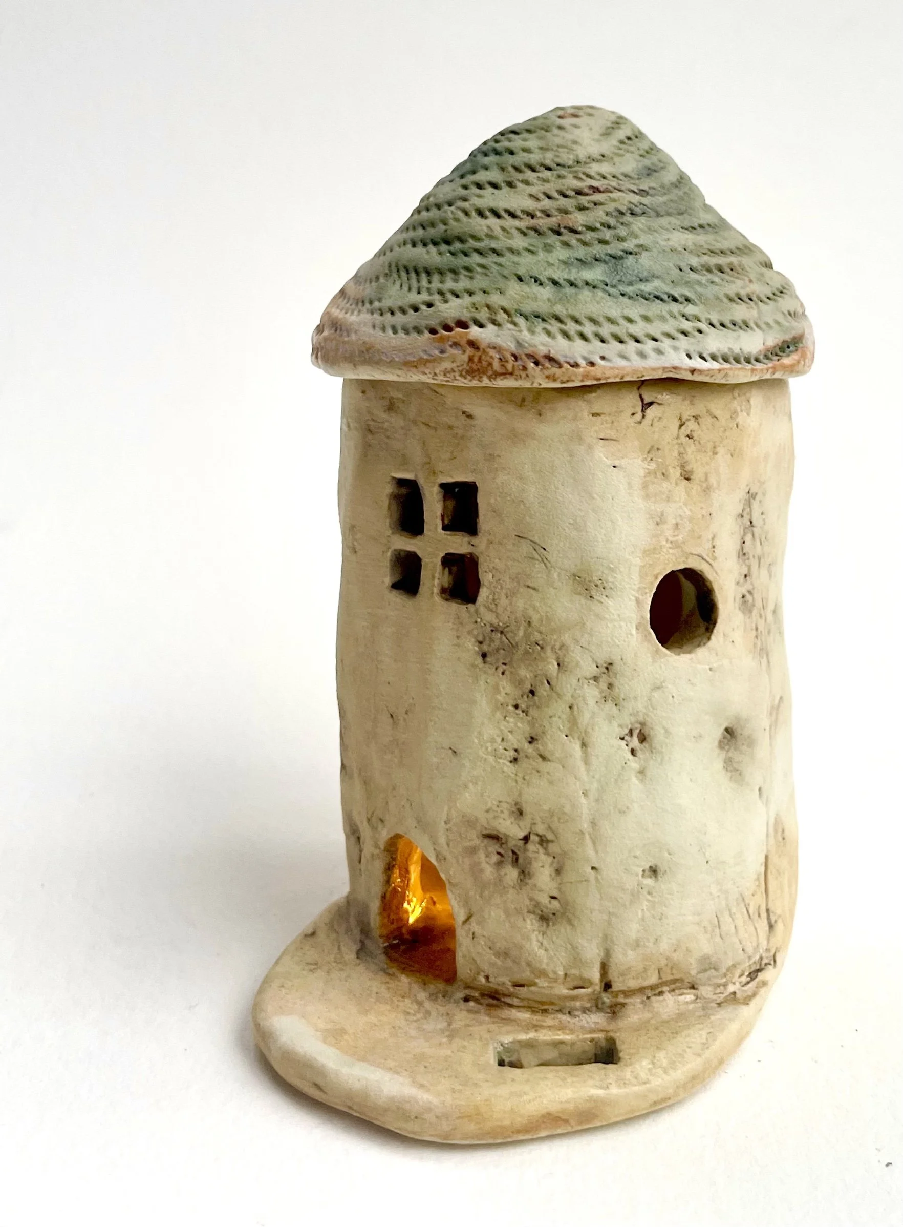 December village. My first forays into different shapes. Round cottages. Multi-level dwellings. I continued to learn and develop my use of glazes and textures.
