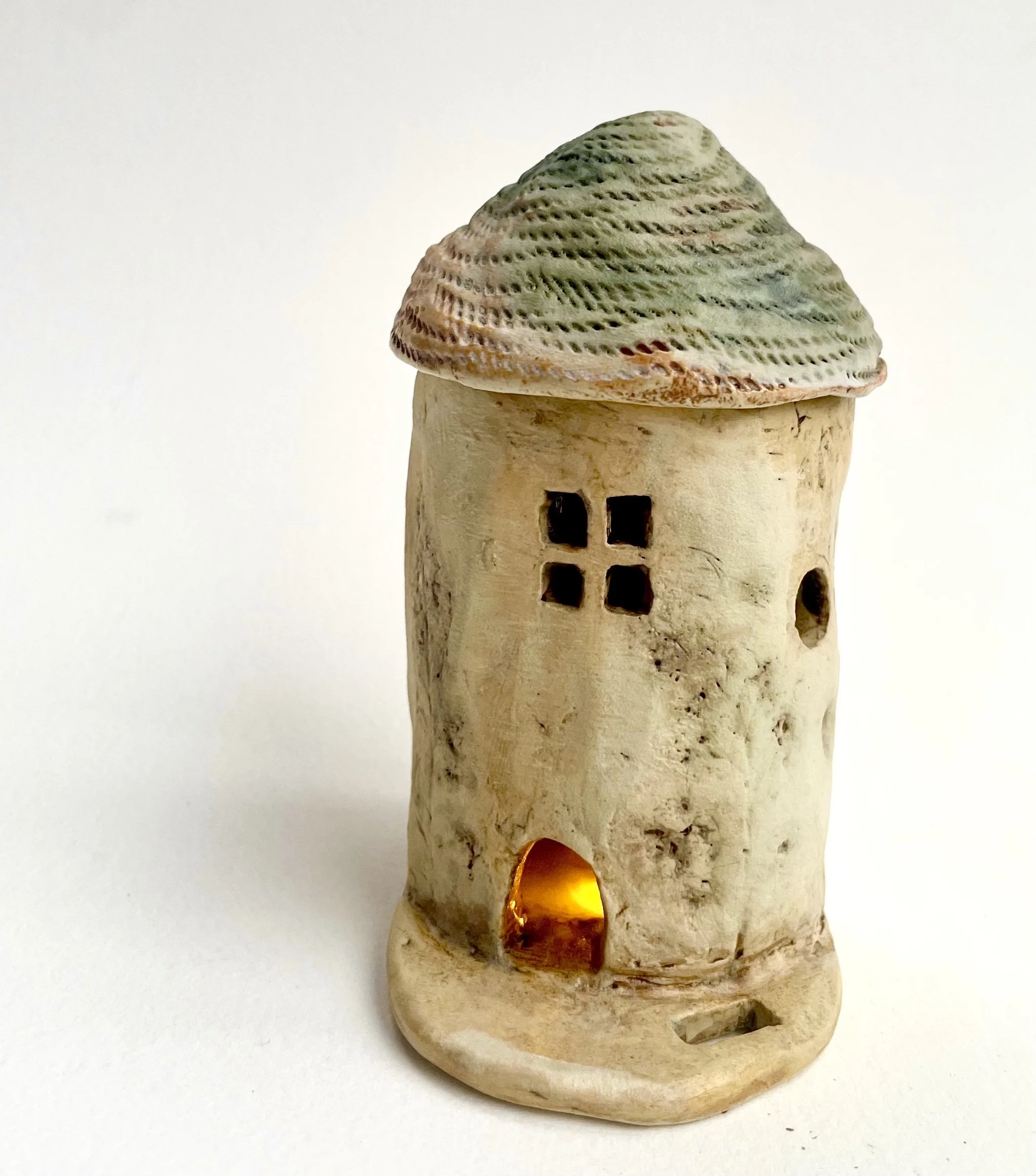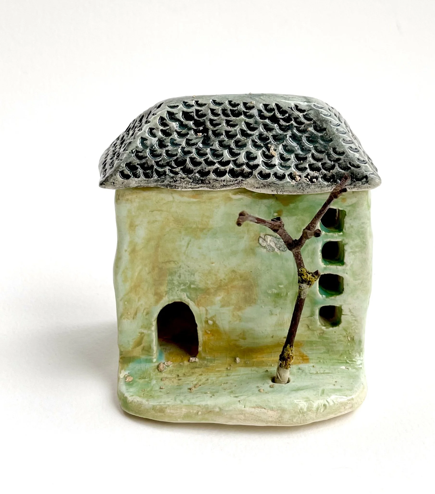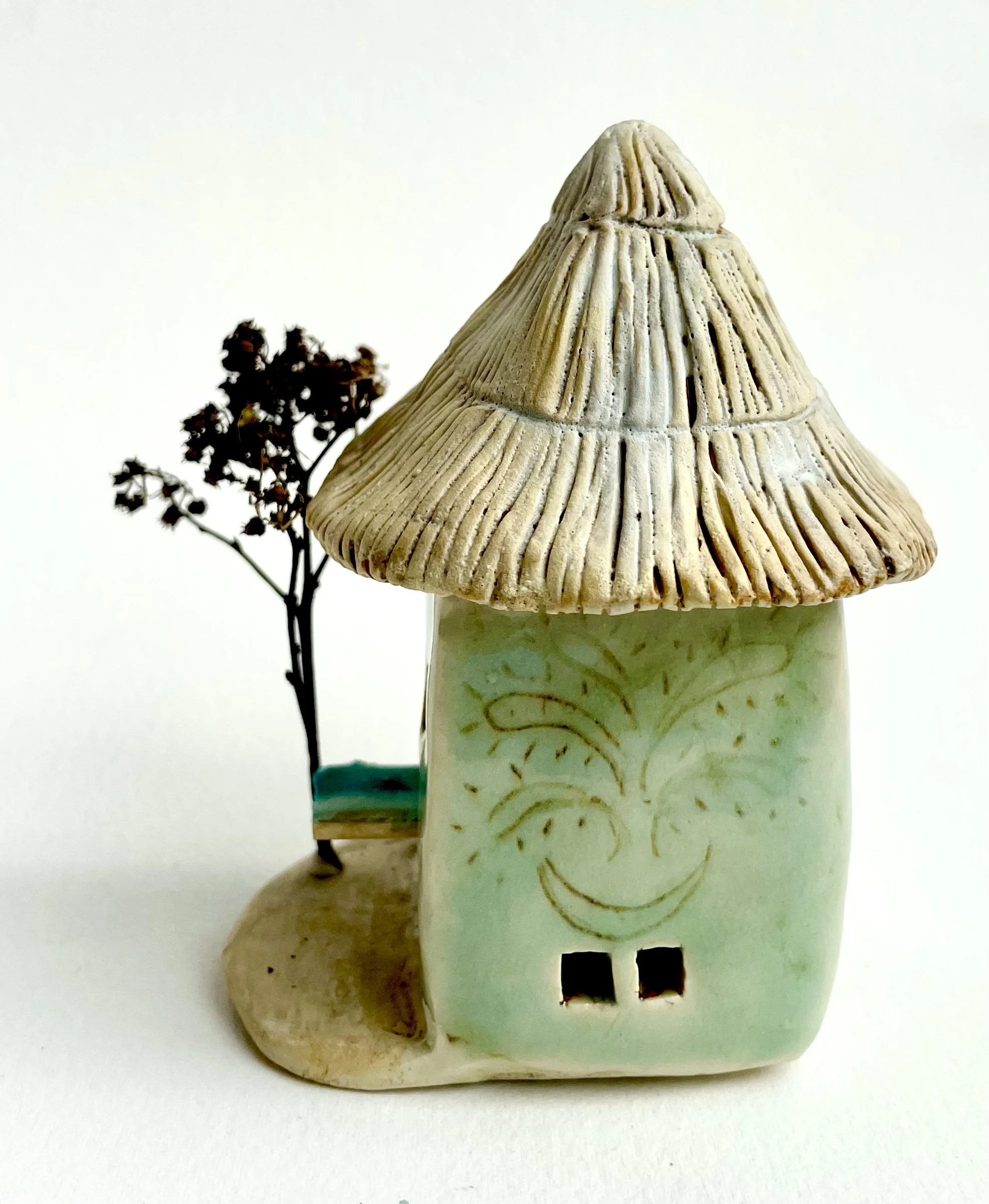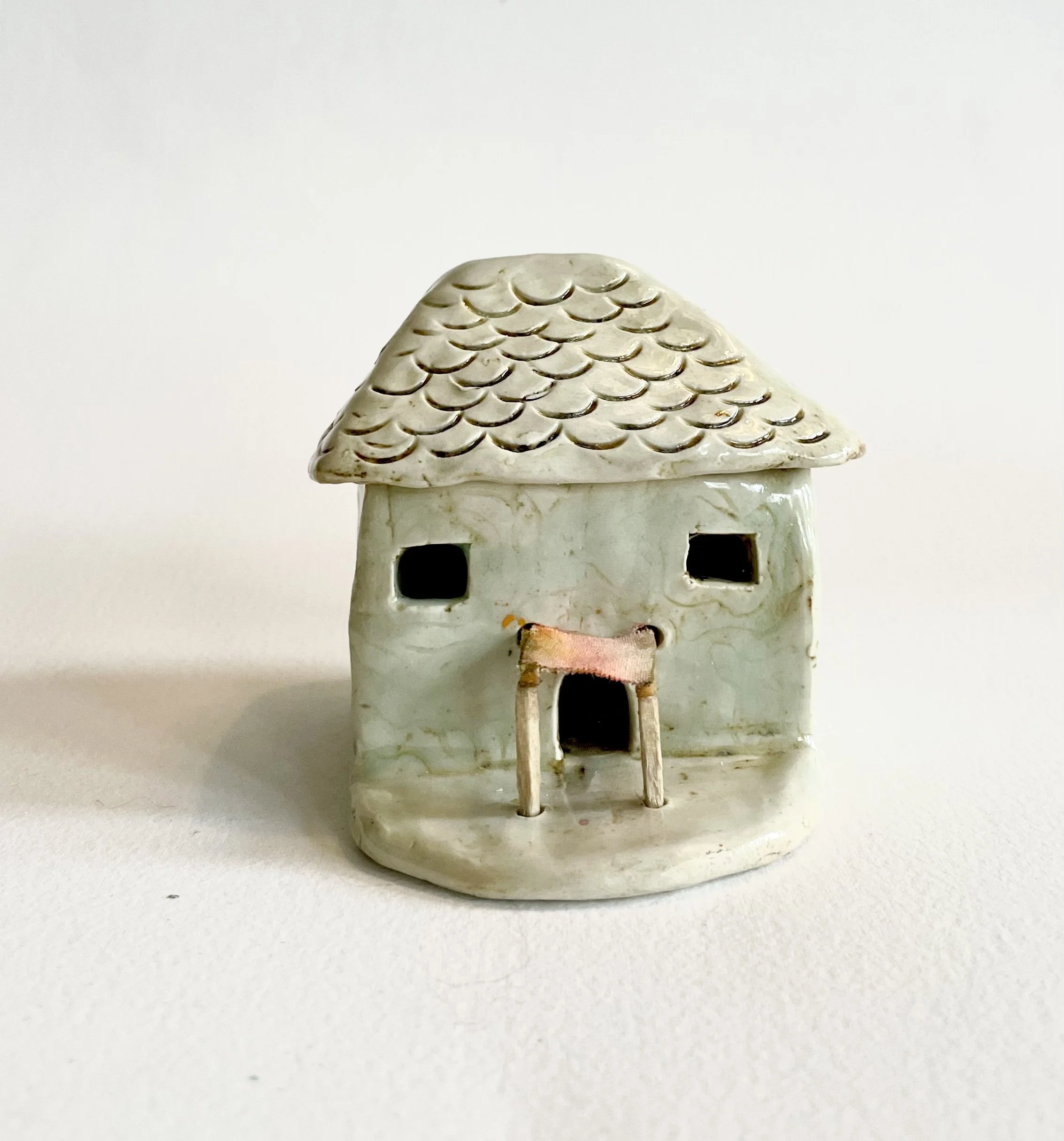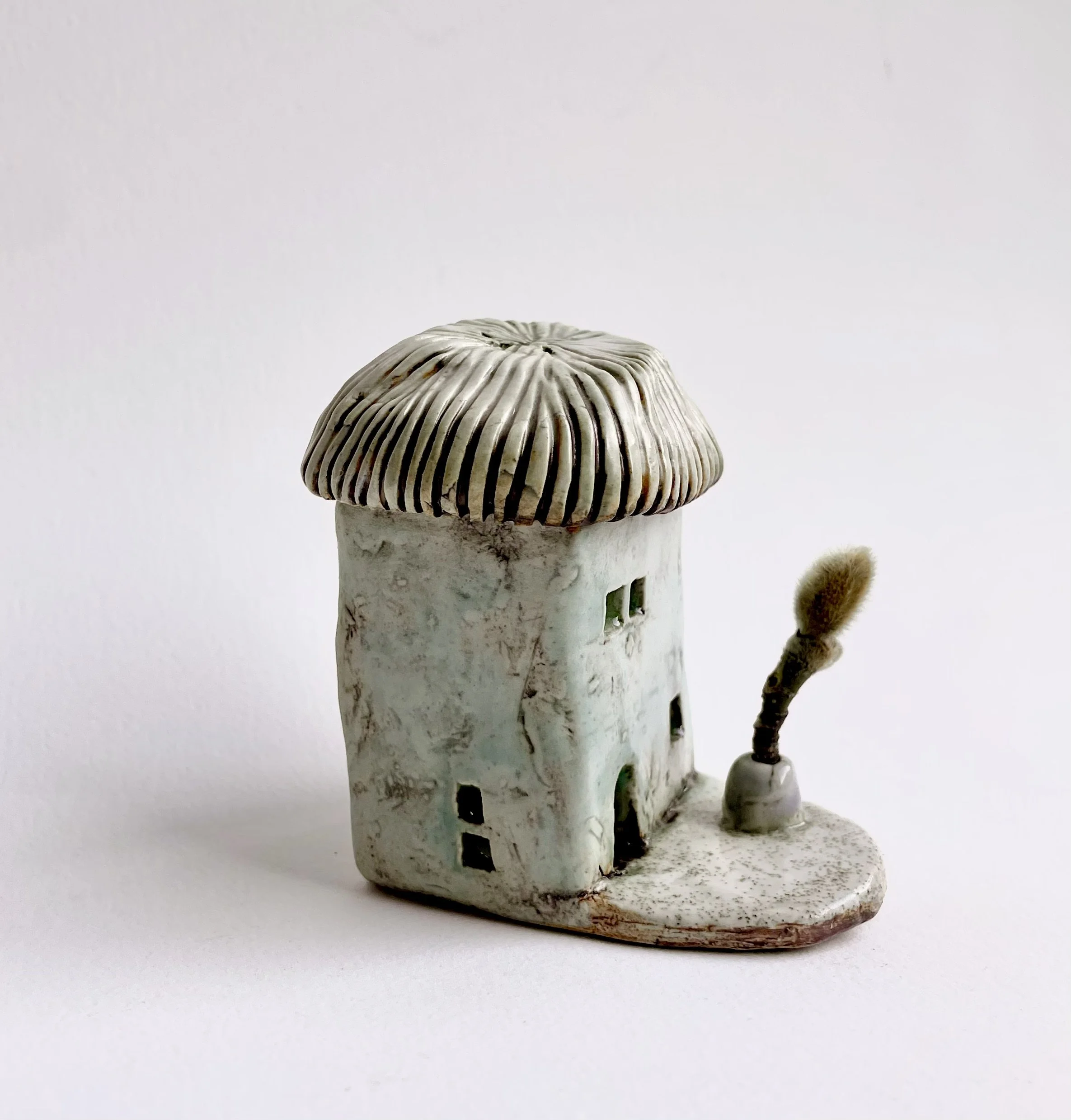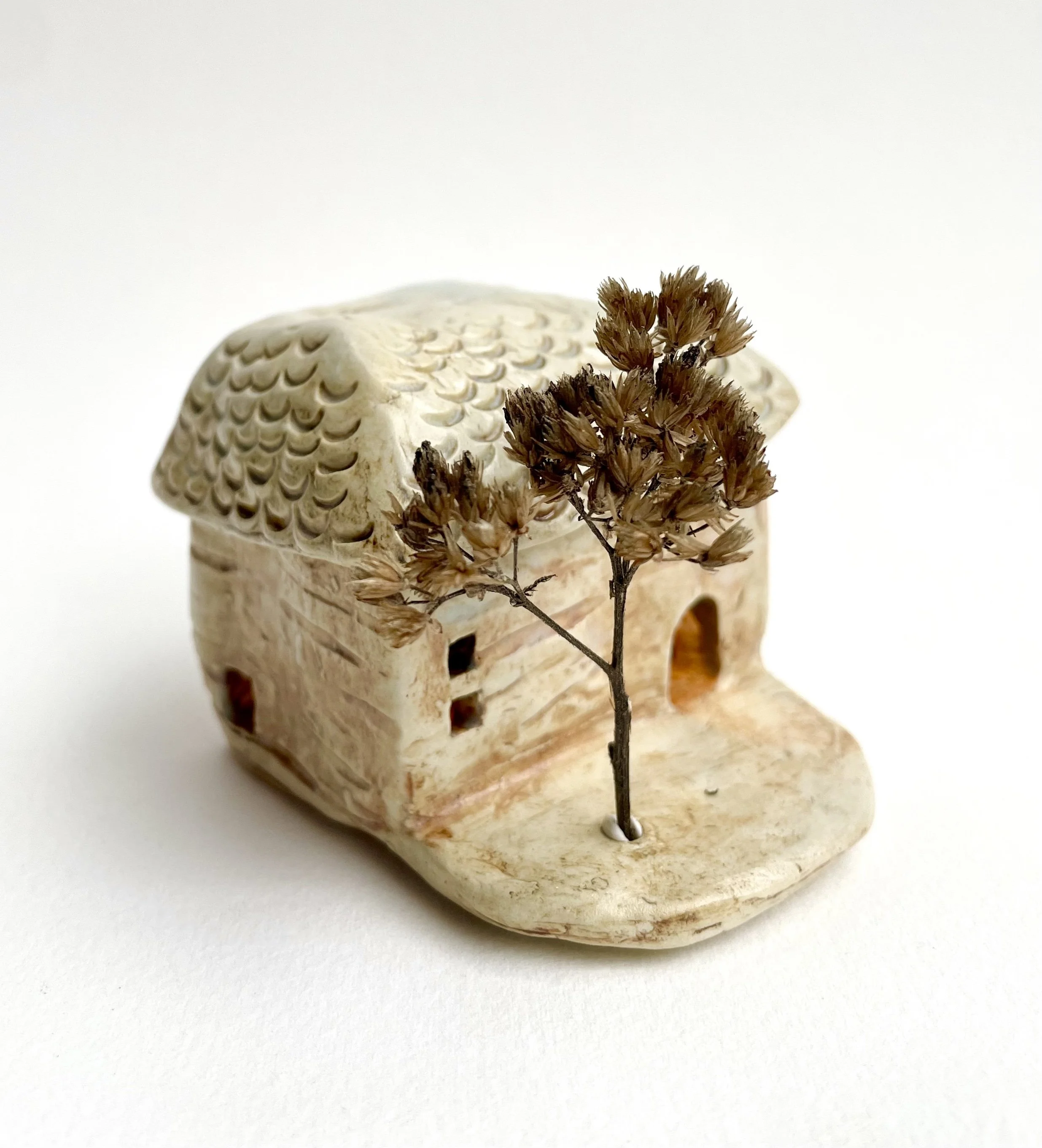 December village. My first forays into different shapes. Round cottages. Multi-level dwellings. I continued to learn and develop my use of glazes and textures.