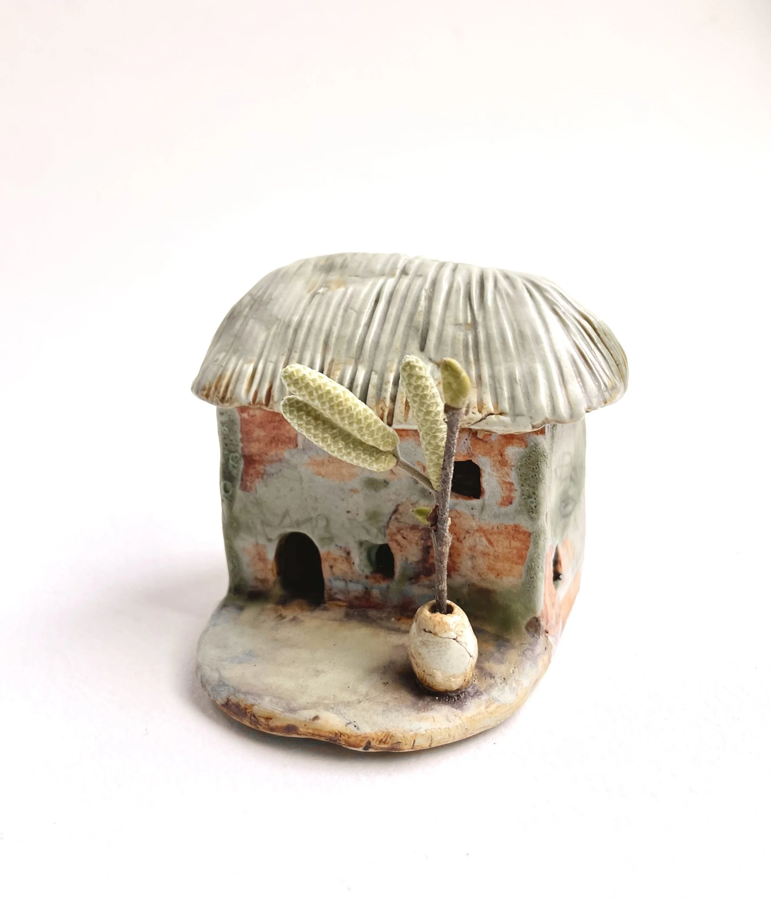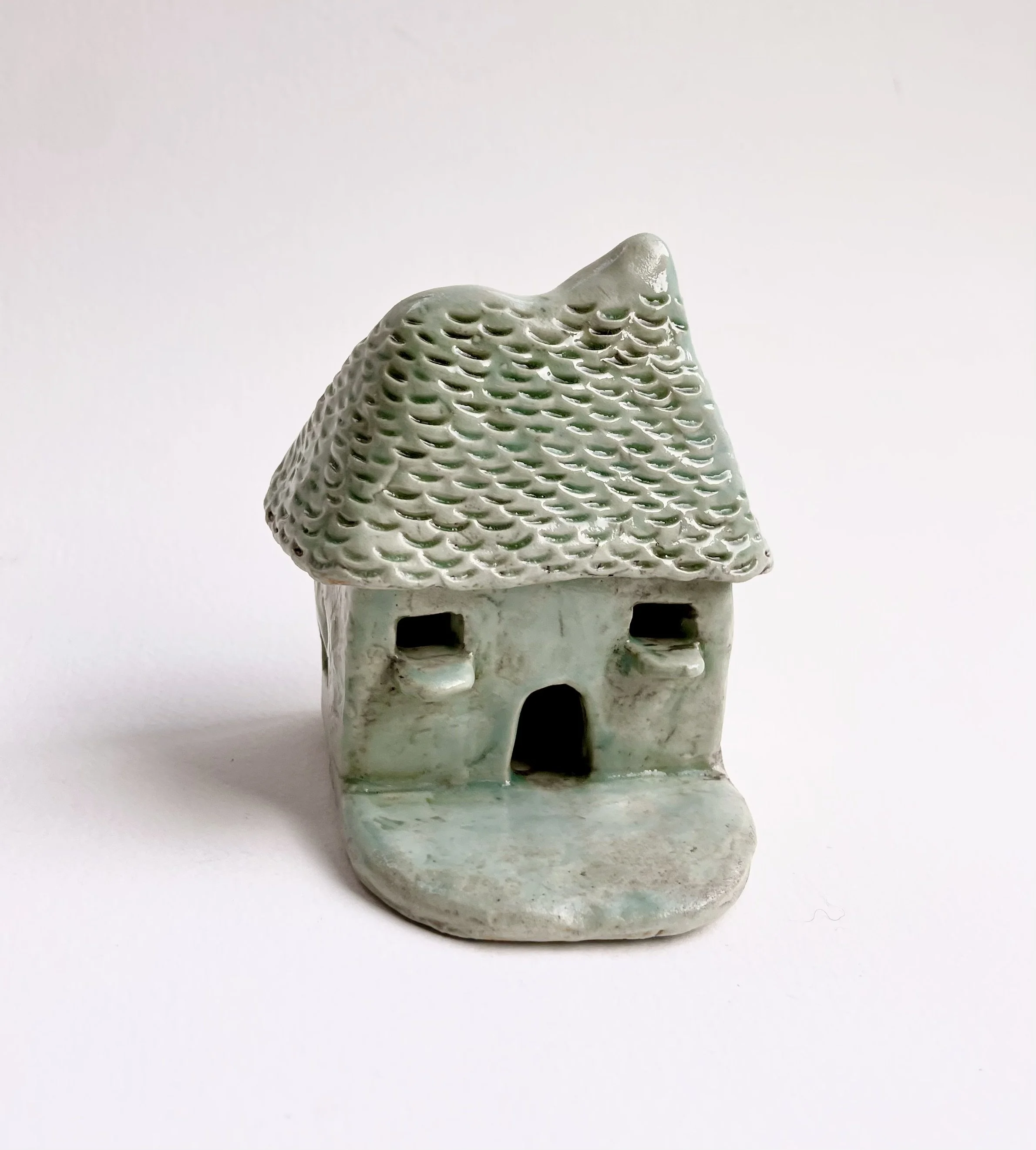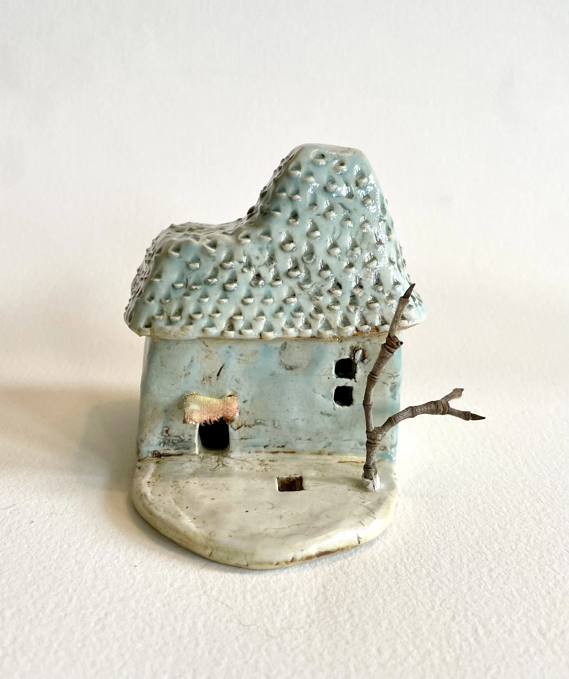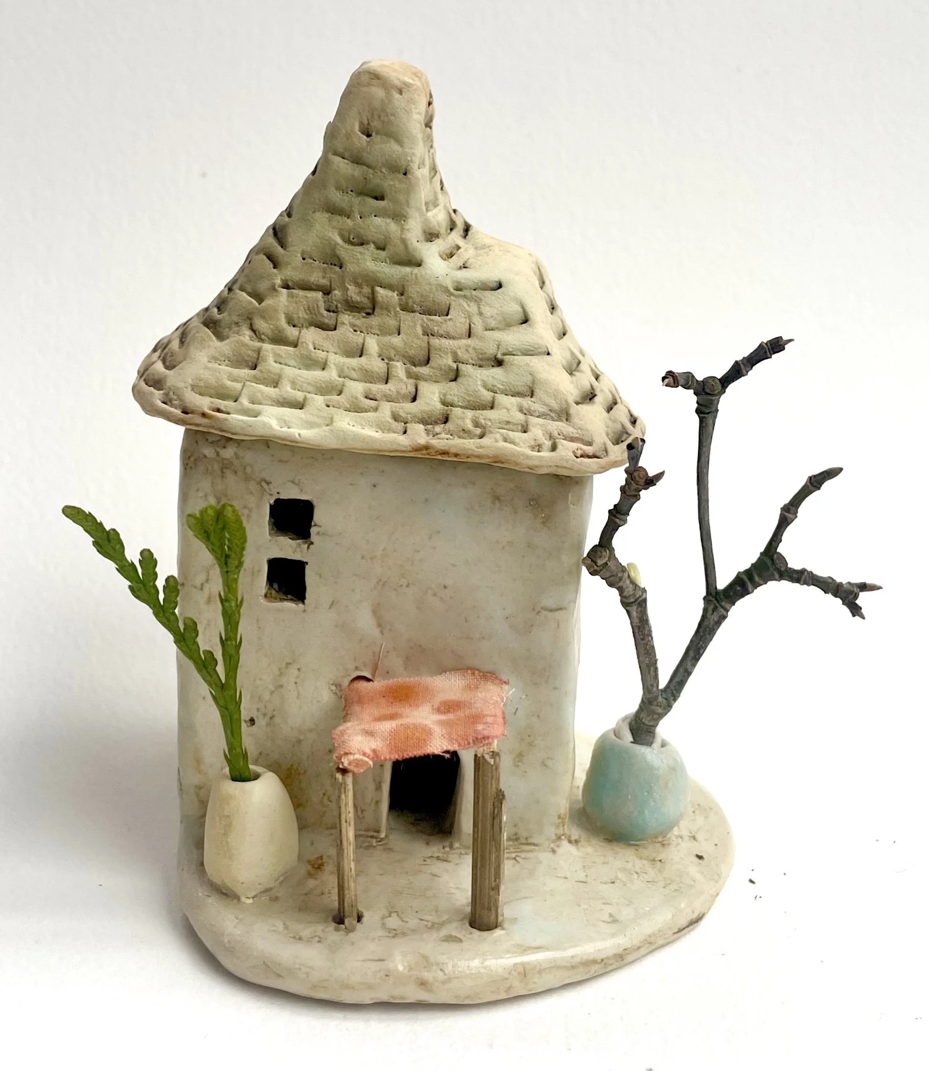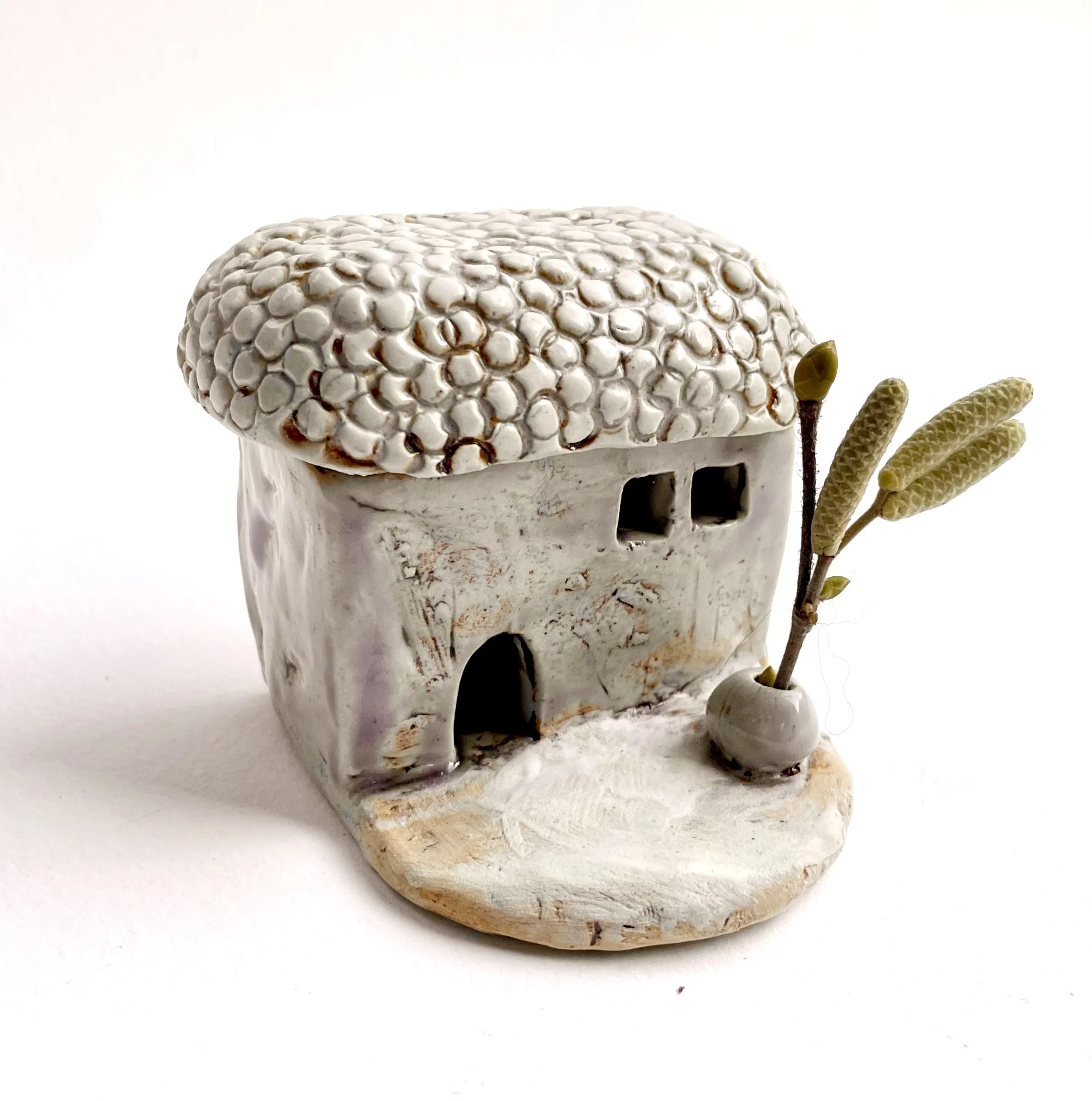 December village. My first forays into different shapes. Round cottages. Multi-level dwellings. I continued to learn and develop my use of glazes and textures.