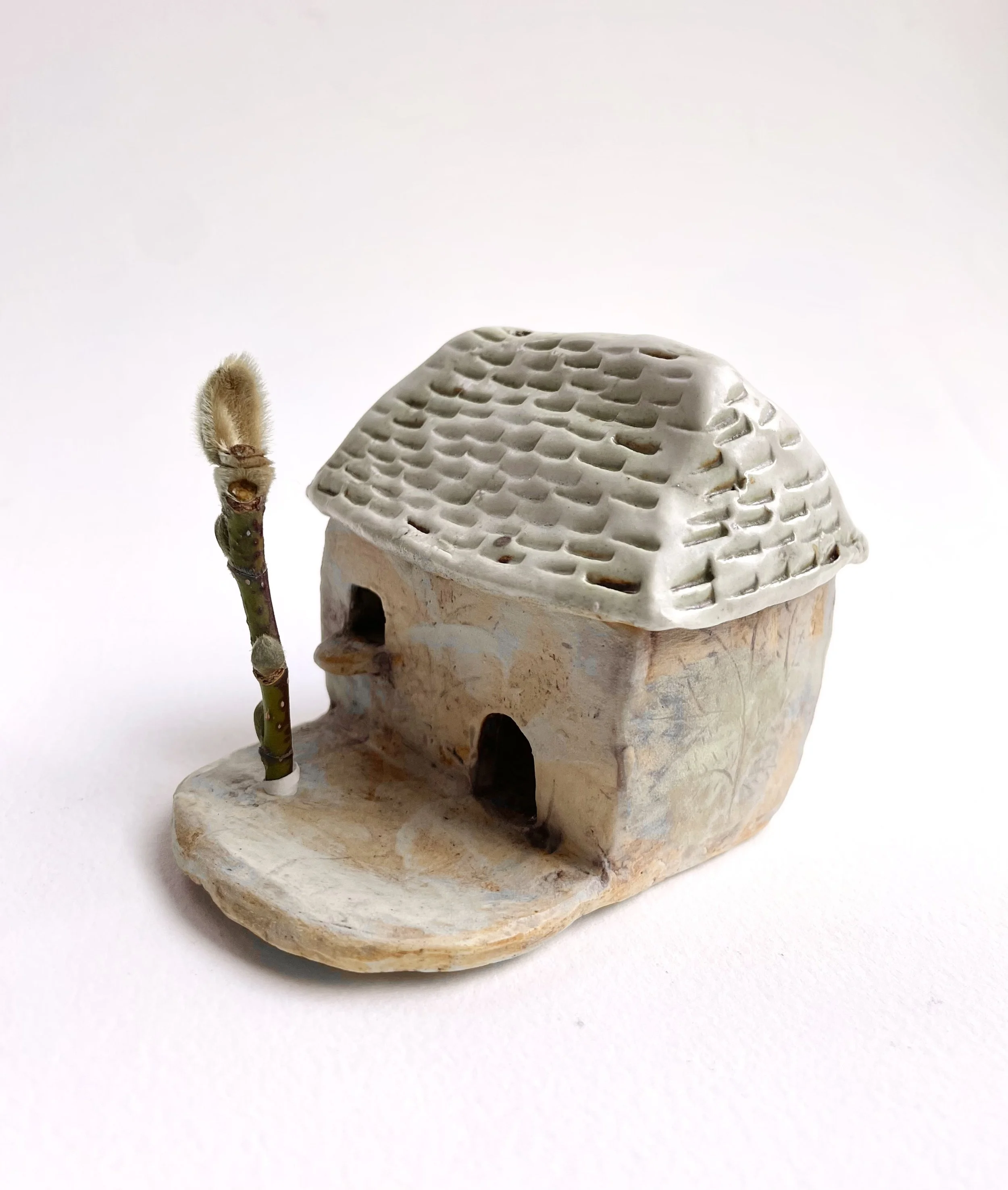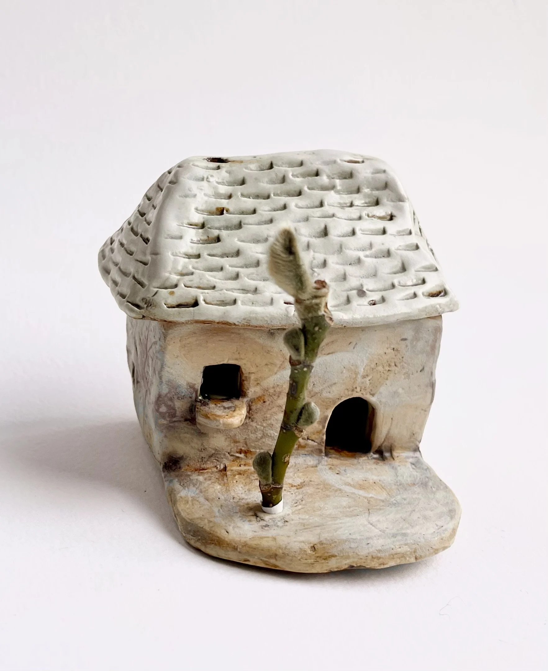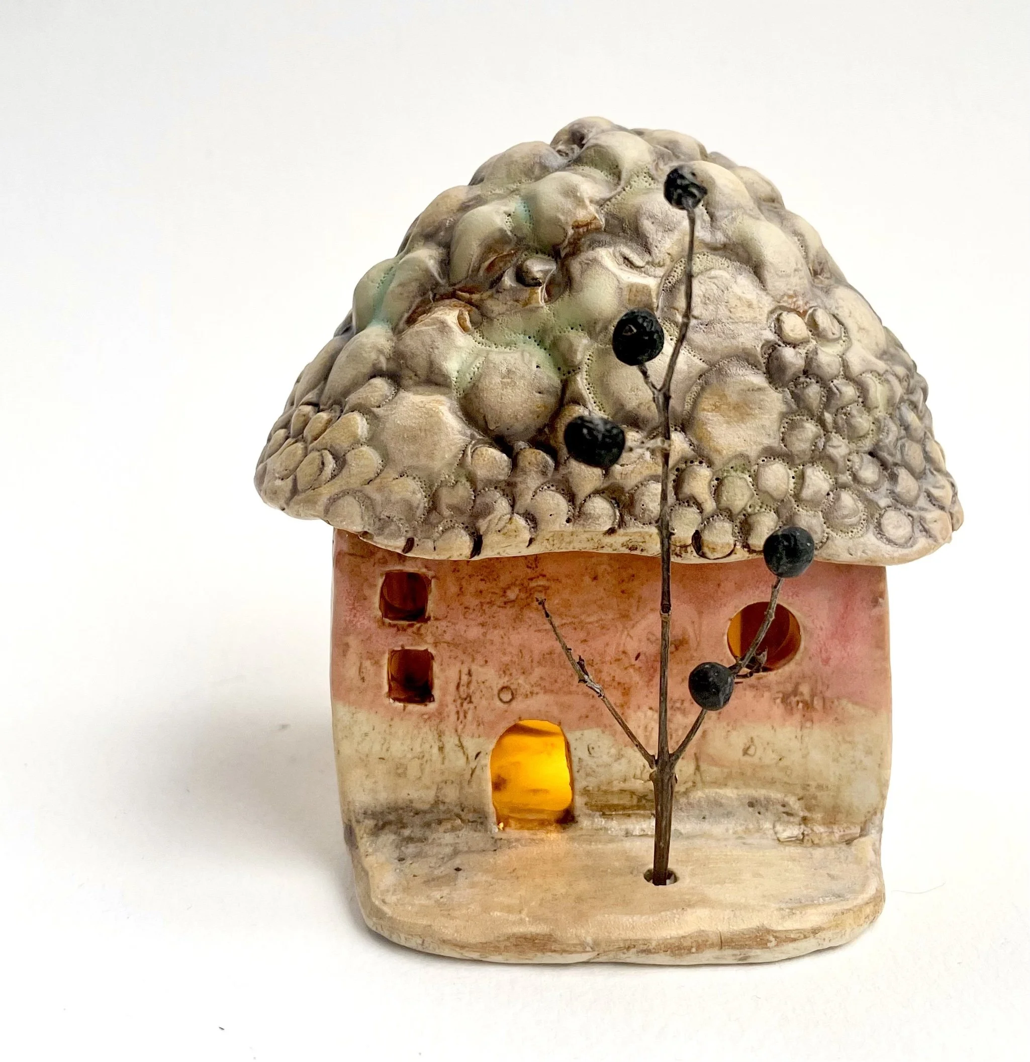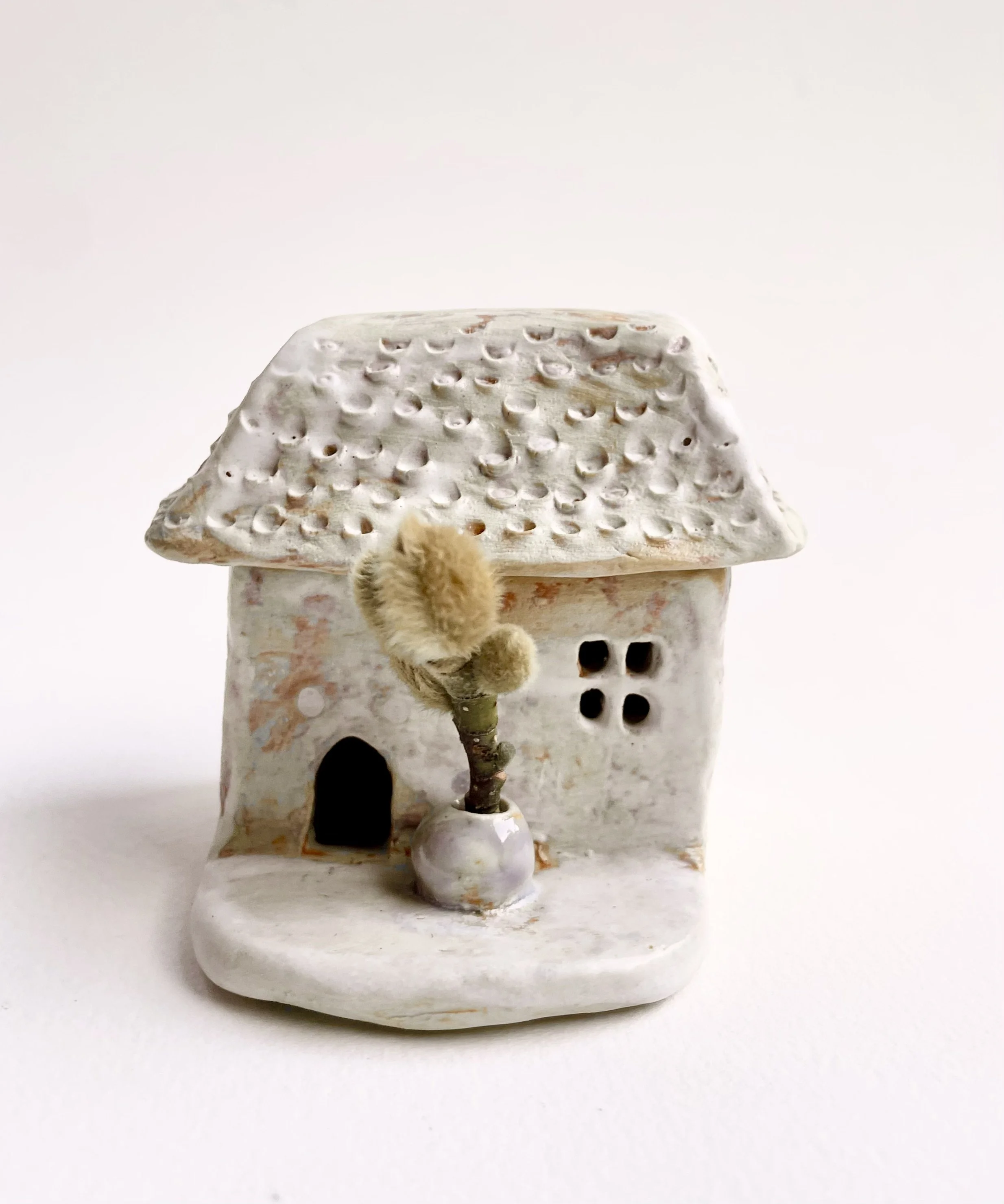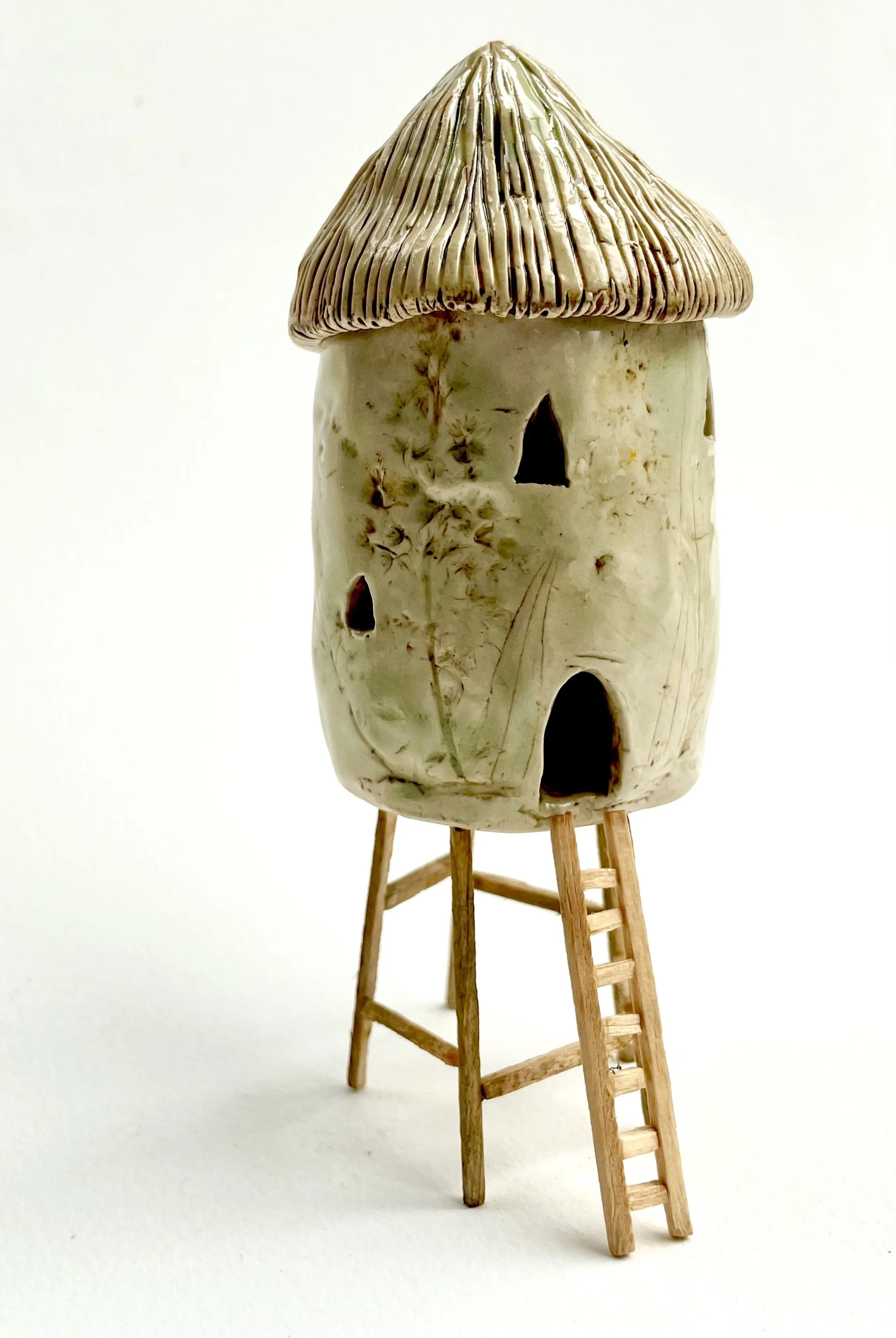 December village. My first forays into different shapes. Round cottages. Multi-level dwellings. I continued to learn and develop my use of glazes and textures.