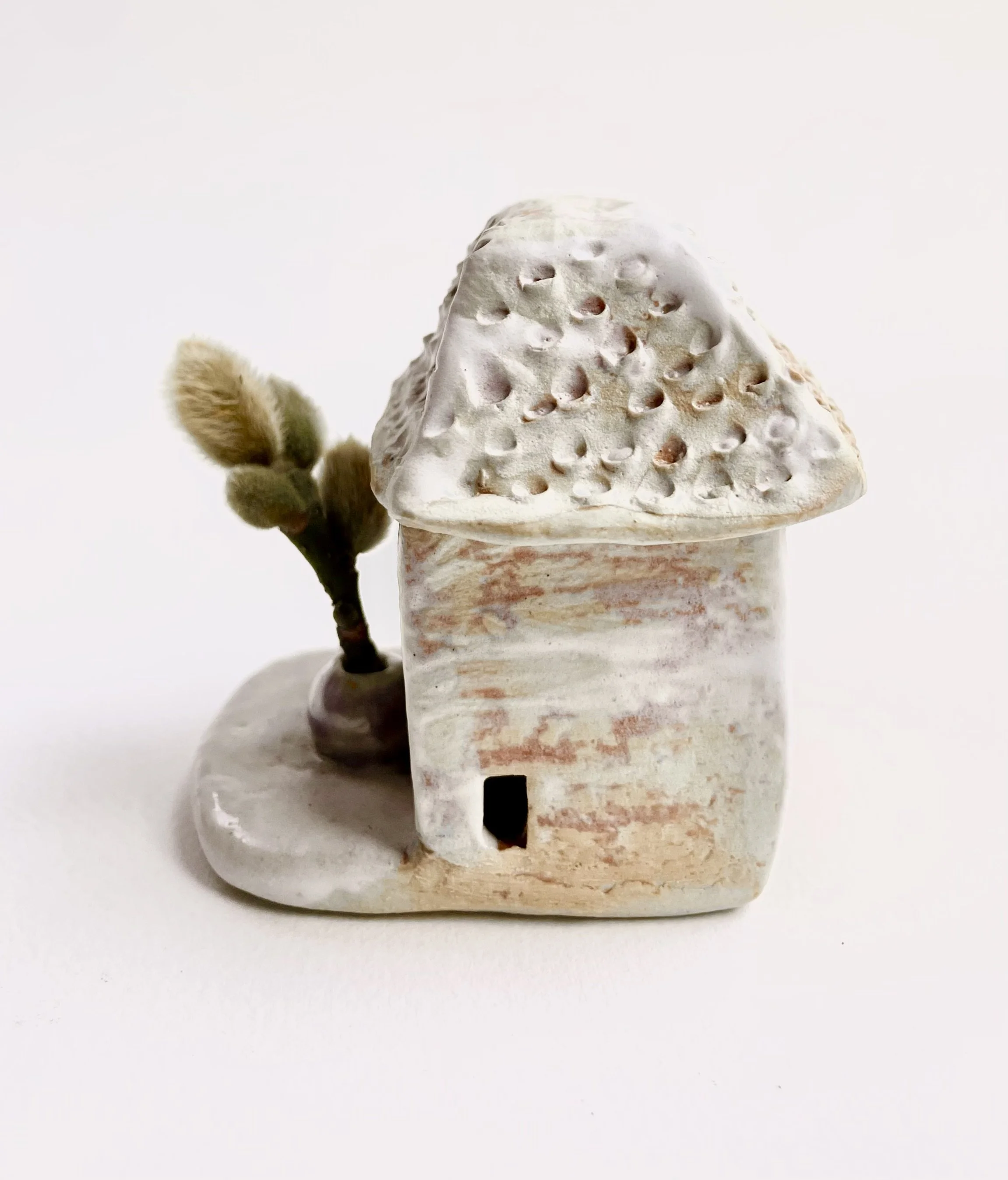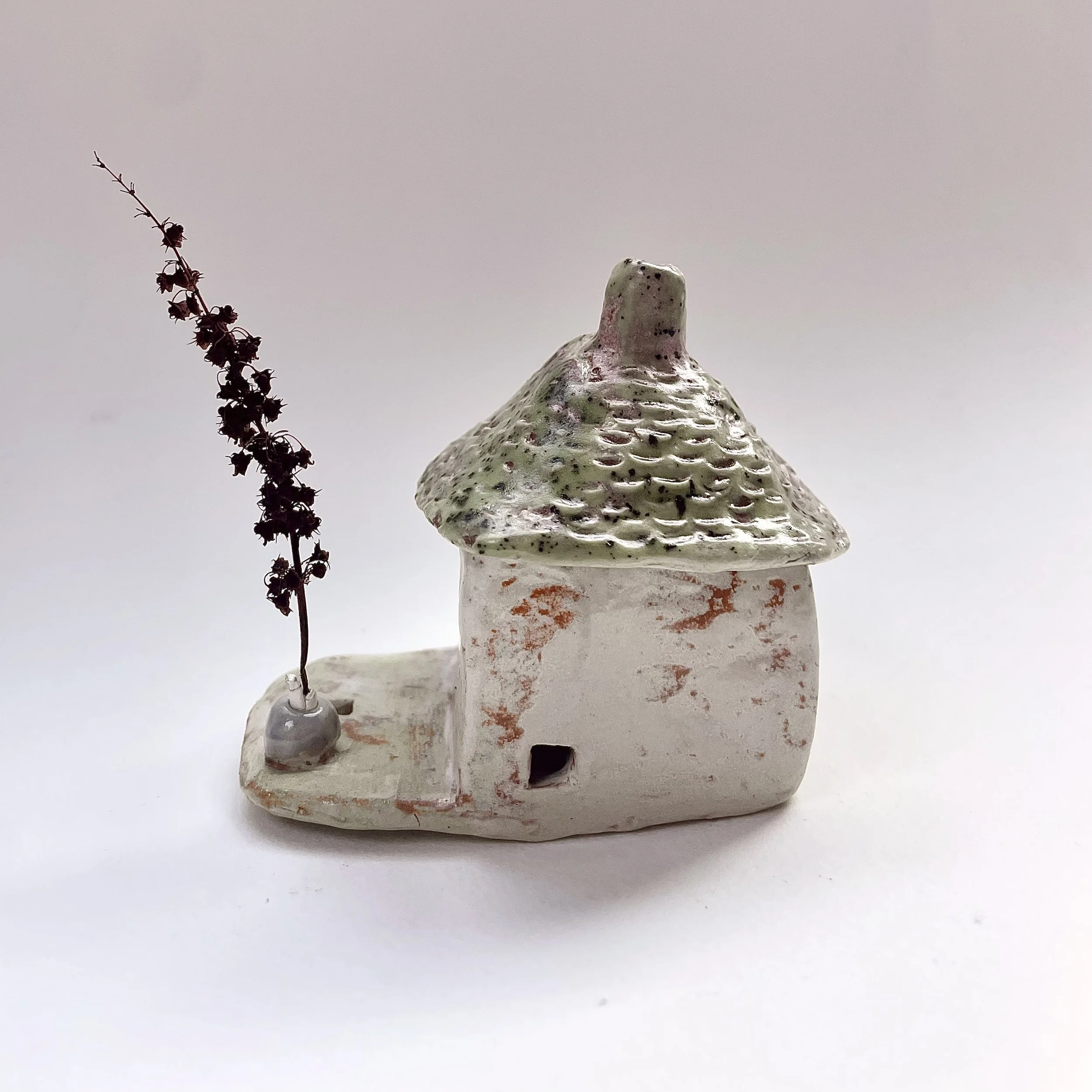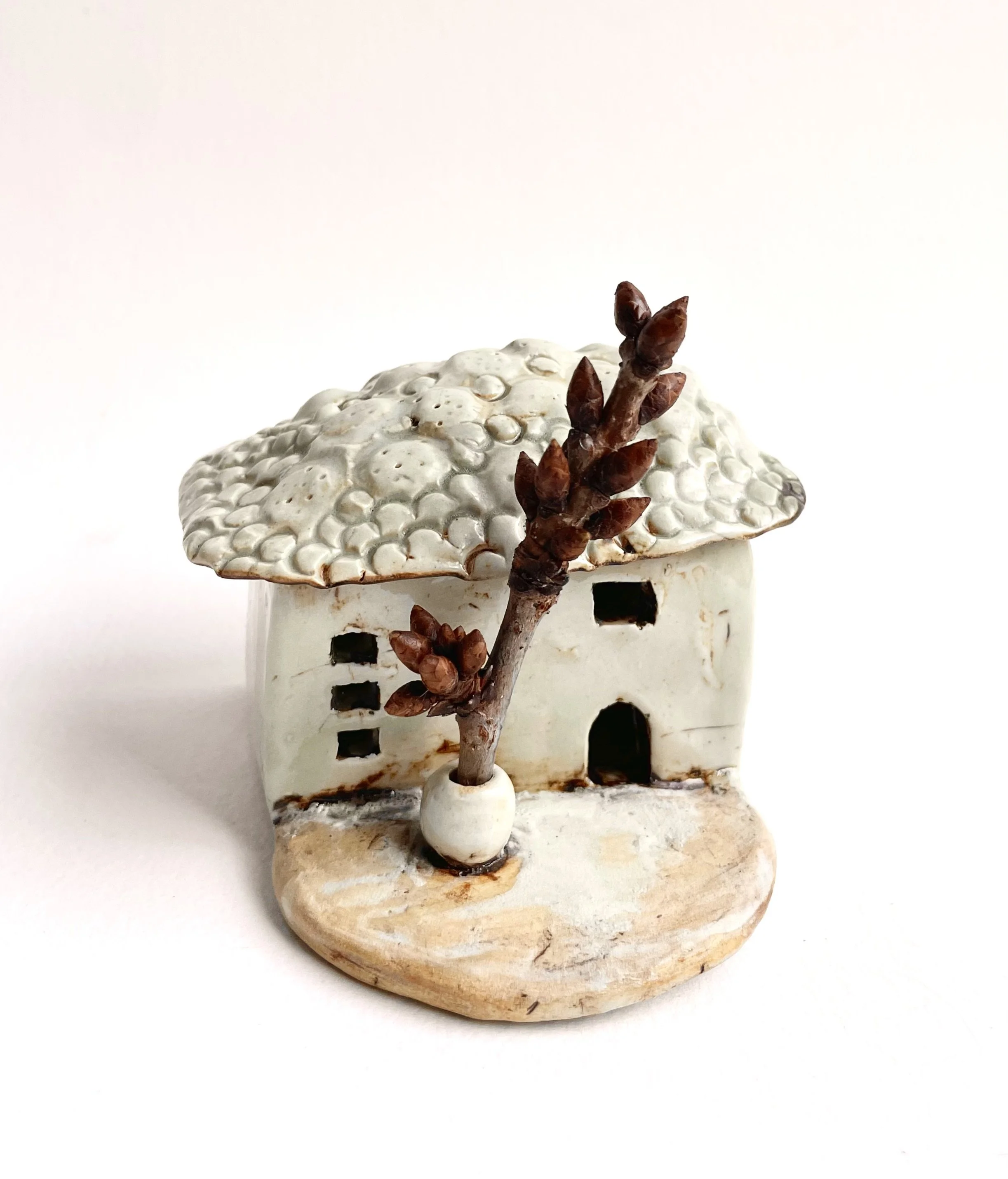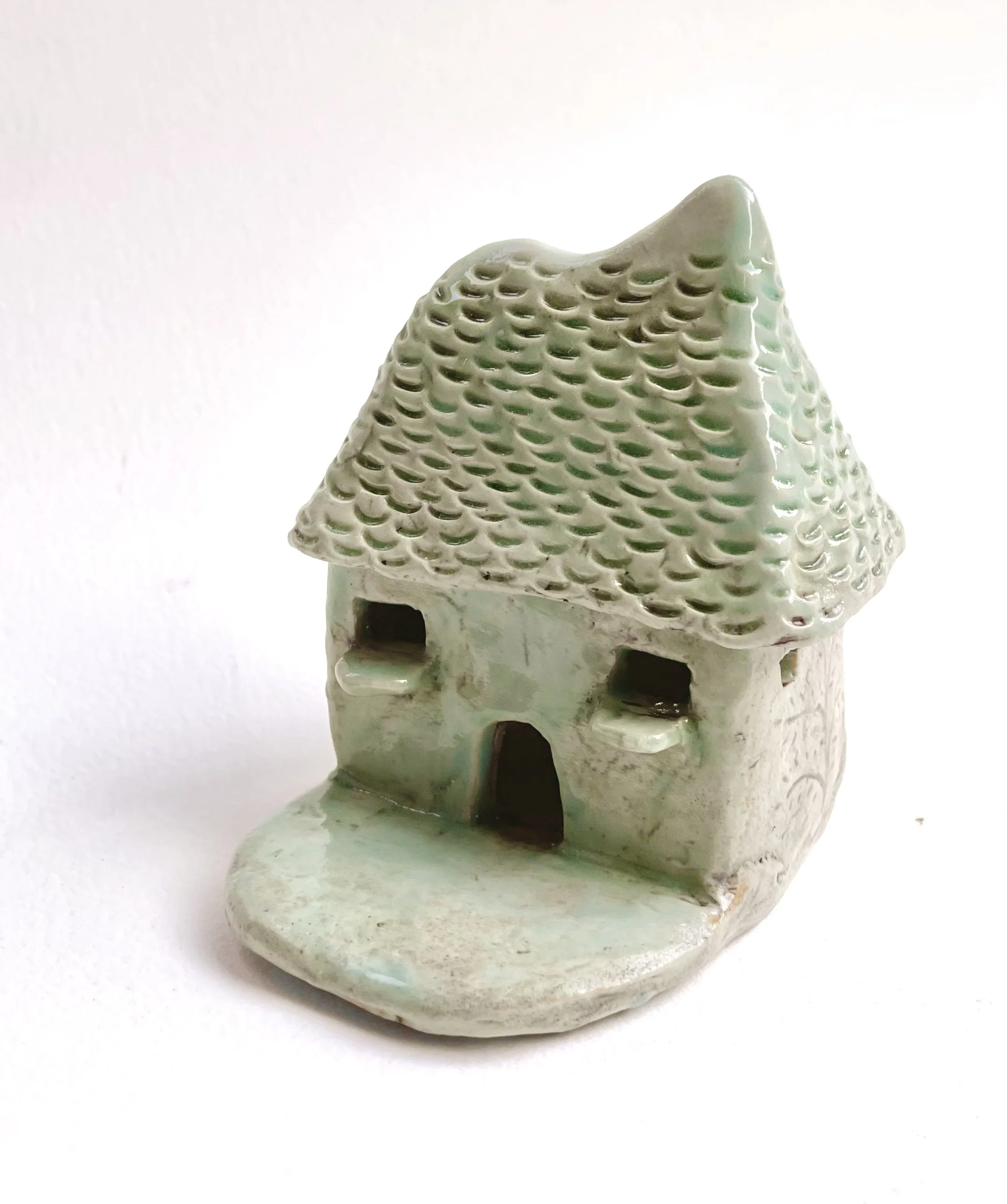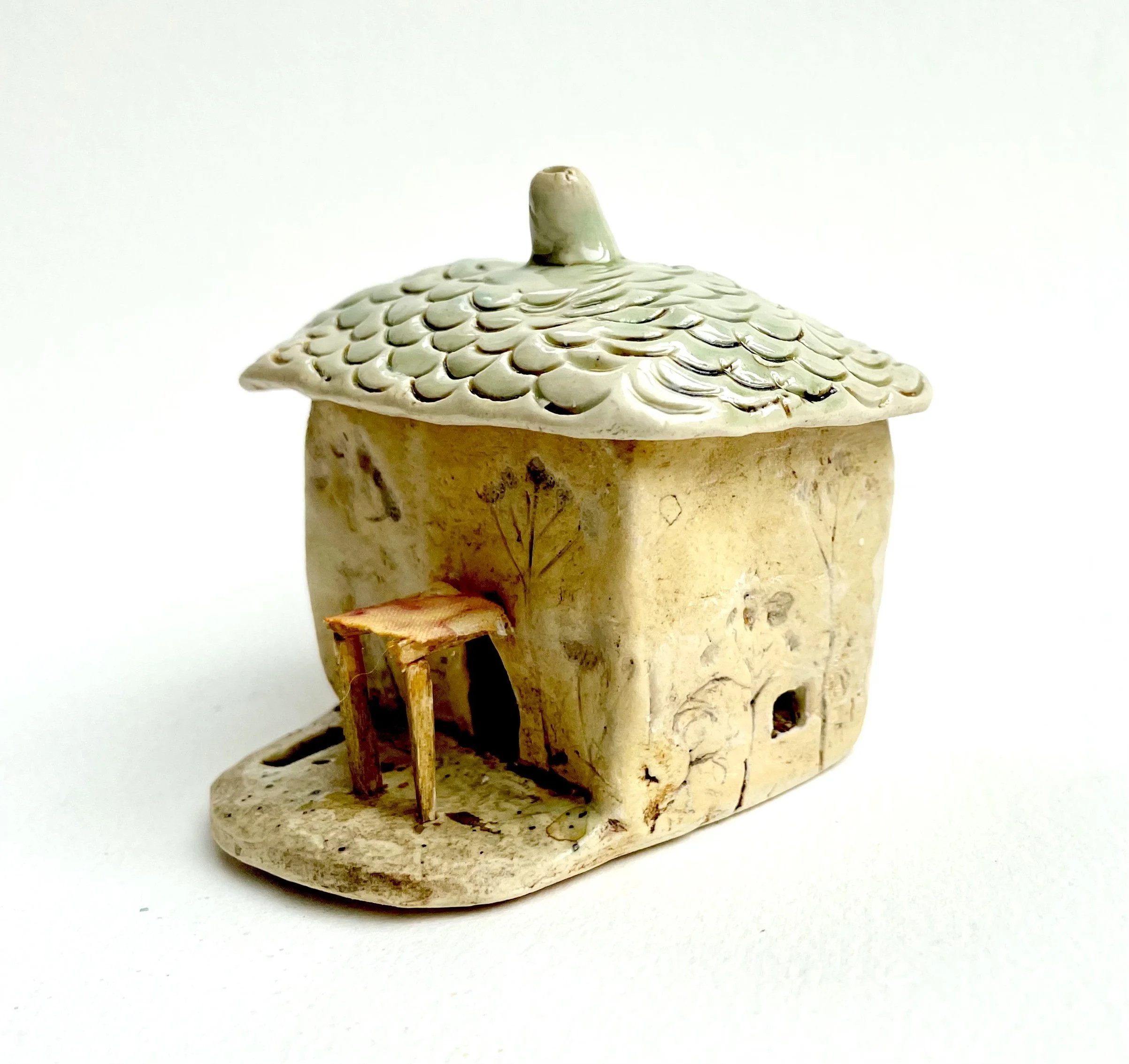 December village. My first forays into different shapes. Round cottages. Multi-level dwellings. I continued to learn and develop my use of glazes and textures.